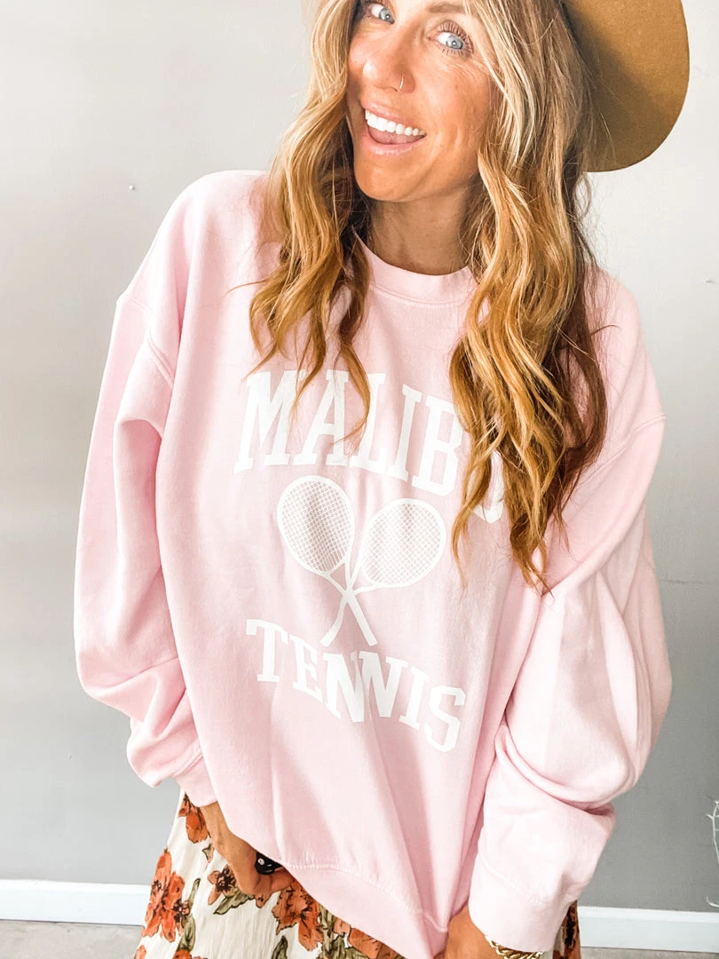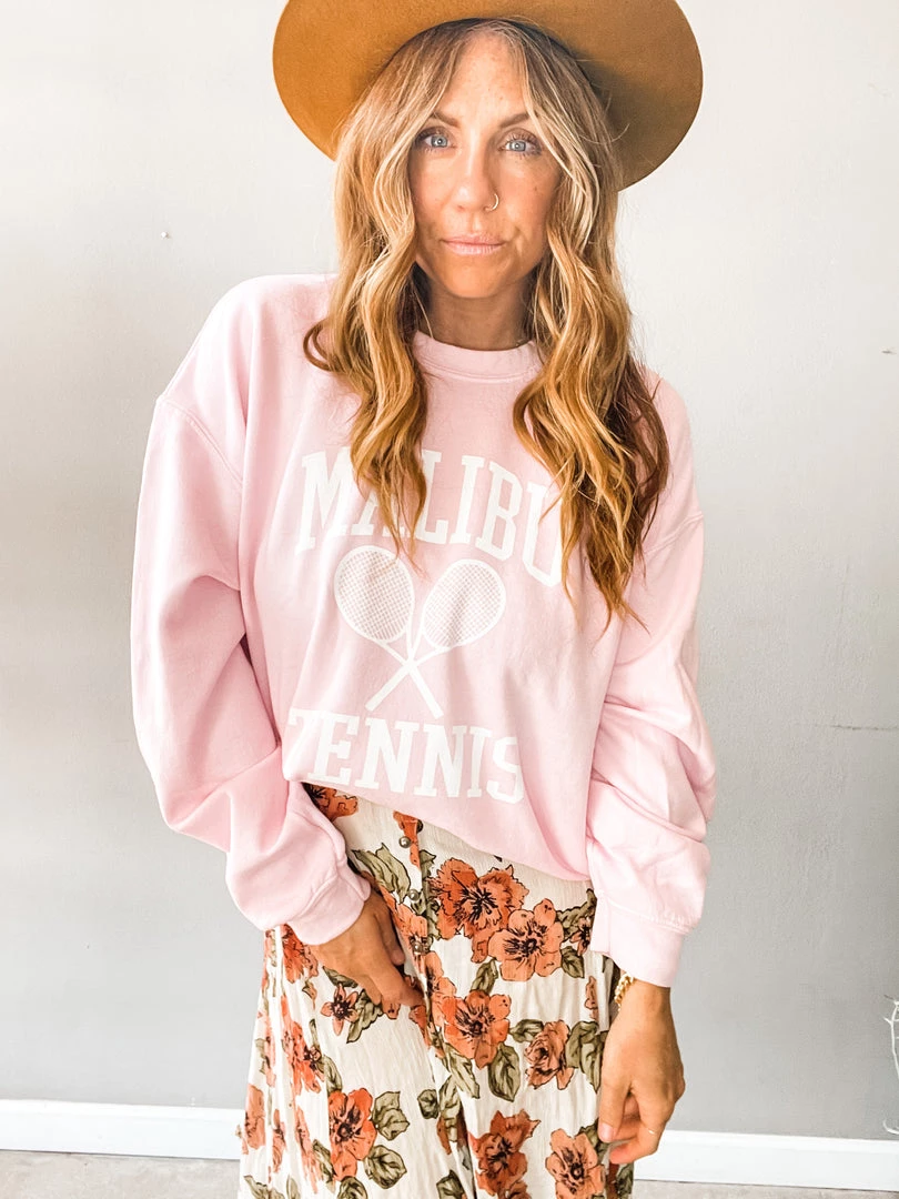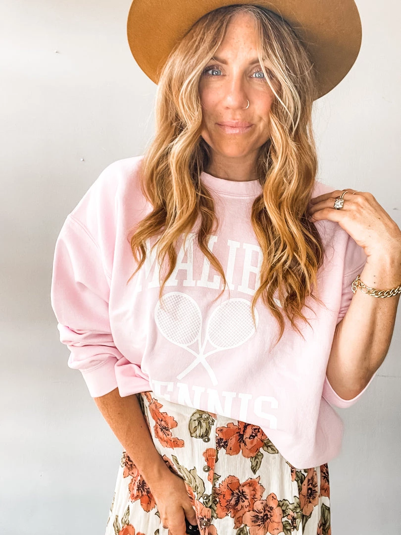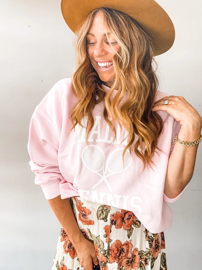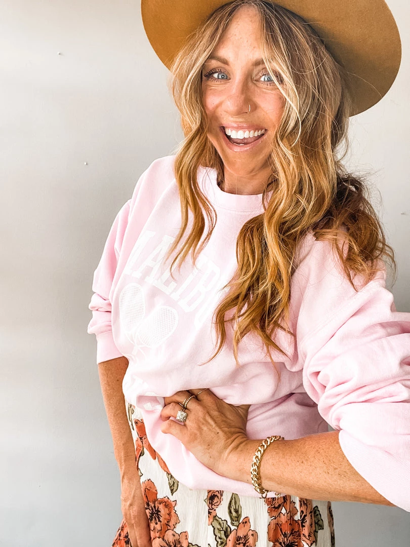 Something about this retro style Malibu Tennis Pullover had us at hello. An oversized, yummy fit in a beautiful light pink. So cute over your swimsuit for cold beach days, with cutoffs, jeans or a midi!!!