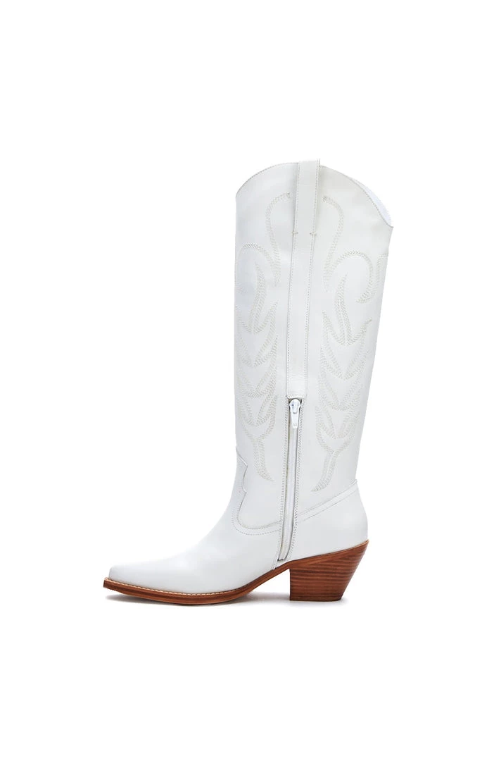 The Agency Boot is the perfect mix between two of our favorite styles. It has that laid back cool girl vibe of a western style boot with the tailored goodness of a riding boot. This slip on style boot has a half zipper closure at the ankle with wooden block heel. We absolutely love these white knee high boots with their stitched design and all too classic feel.