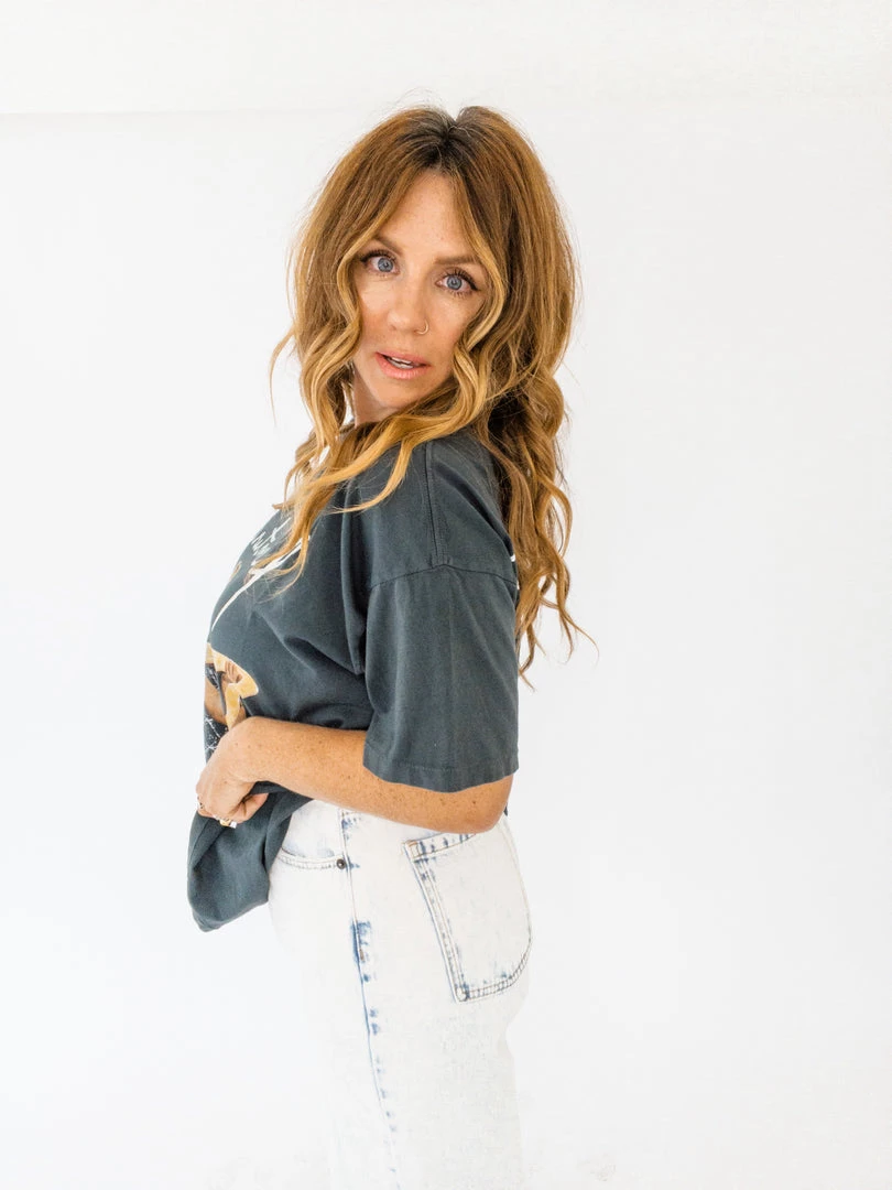 It’s the Princess of Pop, the icon of teen spirit, it’s Britney B*tch! This 100% cotton tee feels like a luxury tour shirt with that perfect drape. It’s a mix between Daydreamer’s weekend tee and oversized tee, making it fit like that perfect vintage tee find. An open neck, with ladder stitch hems and roomy fit. Featuring a photo of Britney with an albino python a-la the iconic MTV Awards moment. A true piece of memorabilia if we ever did see one.