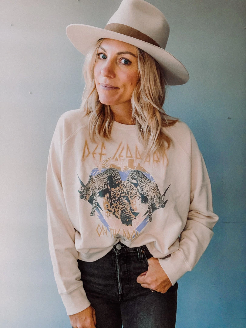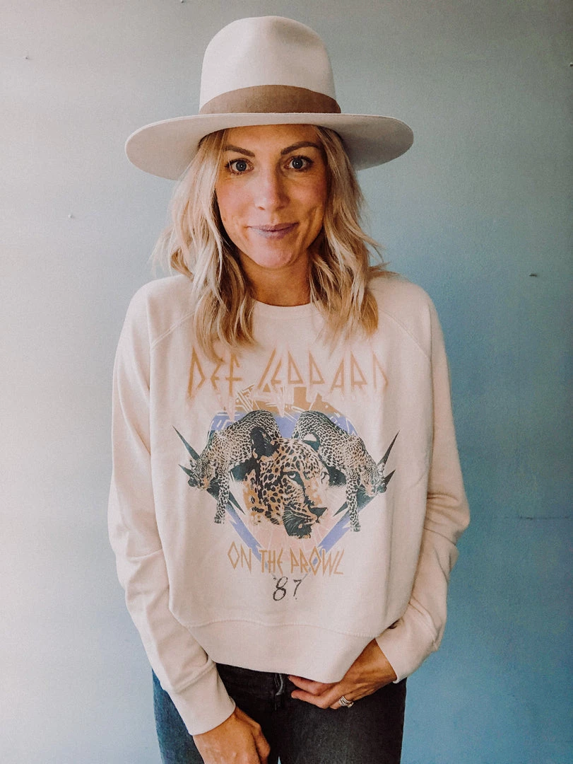 The Def Leopard On the Prowl Varsity Sweatshirt is such a great pullover in a really great colored graphic. This loose fitting pullover has an oversized, boxy fit and goes great with all your favorite denim or lounge and workout wear!!!