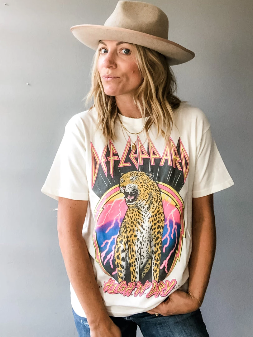 A turning point in Def Leppard’s career, the High N Dry Tee is a staple from their history and is bound to be one in your wardrobe as well. A heavier knit cotton and an oversized fit with a classic crew neck and a longer sleeve, perfect for cuffing. Pair with denim or bike shorts. Oversized fit.
