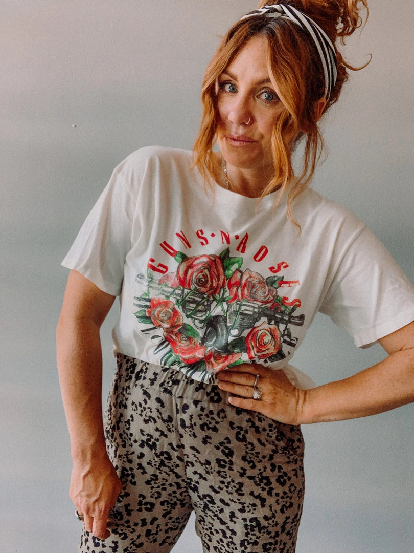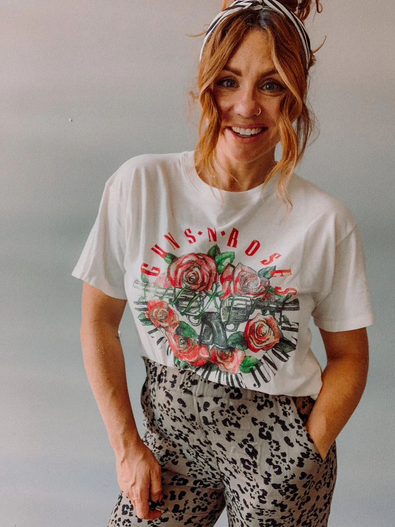 A classic 80’s rock band, Guns N Roses is a staple when defining this era of music. We love the floral graphic from Daydreamer. A boyfriend style tee that is loose fitting and works well with any look.