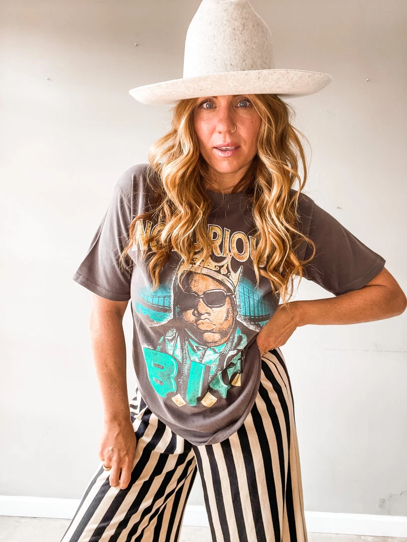If you graduated high school anywhere near us, you need this shirt. A classic crown Notorious BIG Tee that is perfectly oversized. We love this fun graphic tee paired with with denim, cutoffs, bike shorts, or midi skirts!