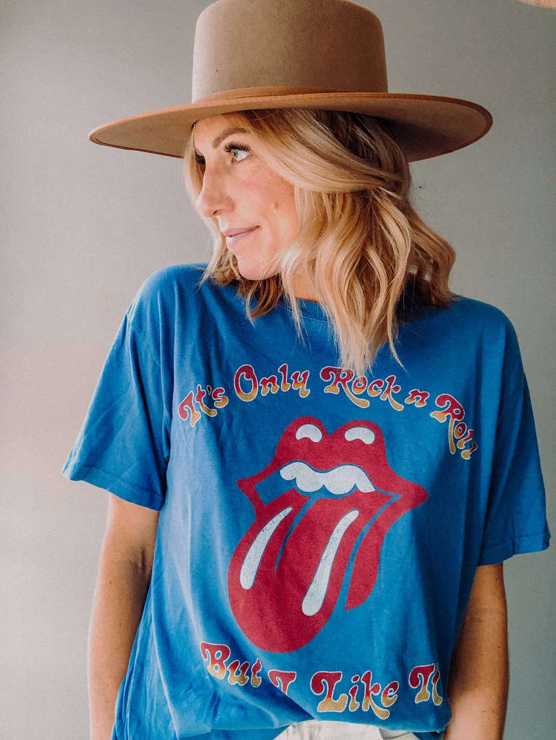 A bestseller, the iconic Rolling Stones tongue, on our favorite boyfriend tee. Loose fitting and ultra soft with a vintage feel, this funky take on a classic is sure to be an instant staple. Easy to pair and wear year round.