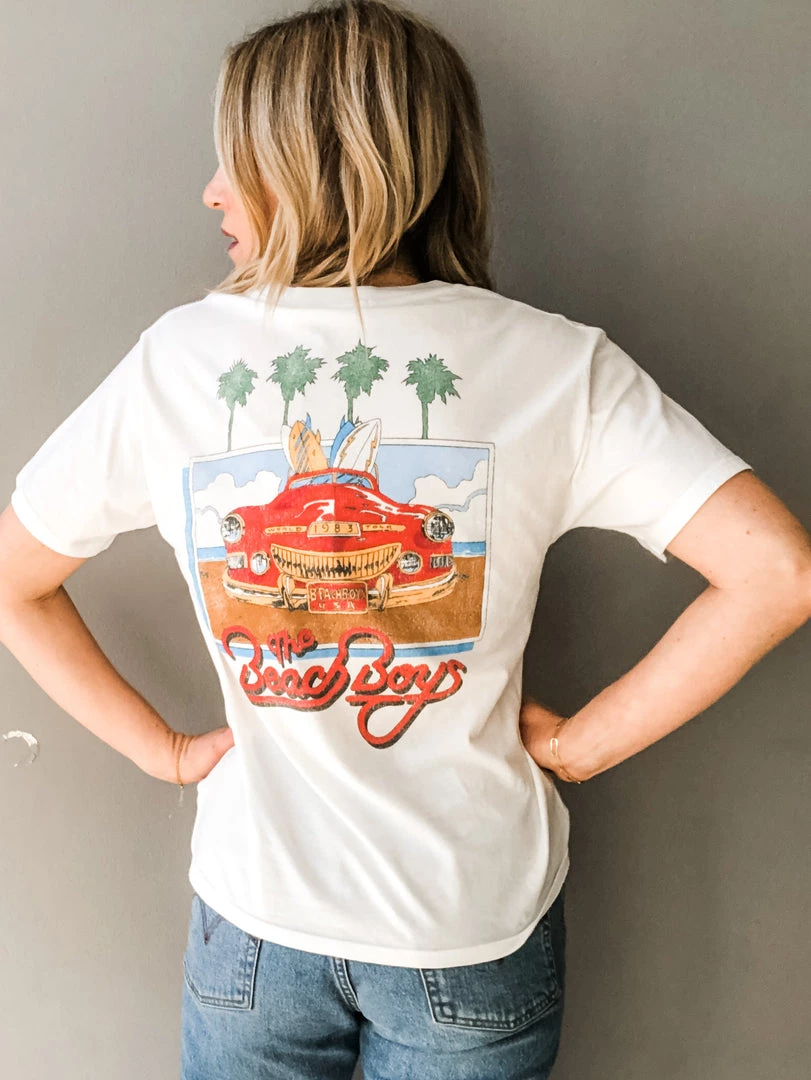 The 80’s and the Kings of California are surfin’ USA with this new boyfriend tee from Daydreamer. Love the beachy vintage vibe of this tee with double sided graphics on a loose fitting shirt with a worn in feel. You can find us wearing this tee with our fav cutoffs as we soak up the sun.