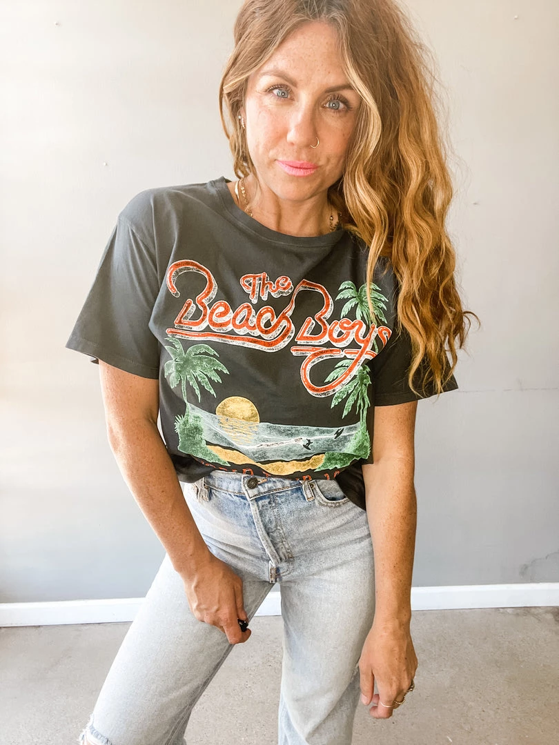 Bermuda, Bahama, come on pretty mama. Arriving just in time for warmer temps, this double-sided boyfriend tee sets the tone for a summer filled with (really) good vibrations. This uber soft tee conjures the timeless surf rock energy and has that perfect hand feel and worn in look. This boyfriend tee is loose in all the right places. Featuring an open neckline and slightly dropped sleeves, this light tee is soft and slouchy.