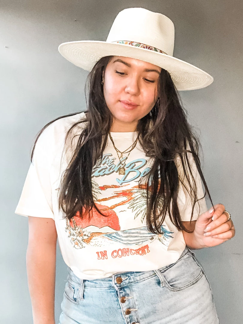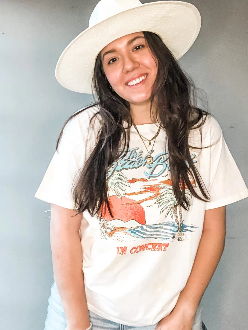The Beach Boys, epitome of California living.Ā Made from a soft 100% cotton, with a perfect hand feel and worn in look, thisĀ concert tee features palms, the ocean and a yellow fizz tie dye color way designed straight from sun-drenched Los Angeles. ThisĀ boyfriend tee is loose in all the right places. Featuring an open neckline and slightly dropped sleeves, this light tee is soft and slouchy!