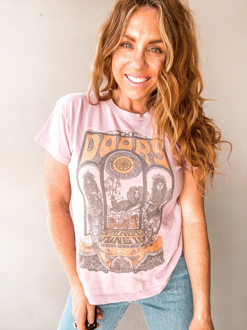 The Doors Concert Tour Tee is a slightly more sturctured tee with a great fun pop of color!!! We love this print to pair with all your favorite prints and denim.