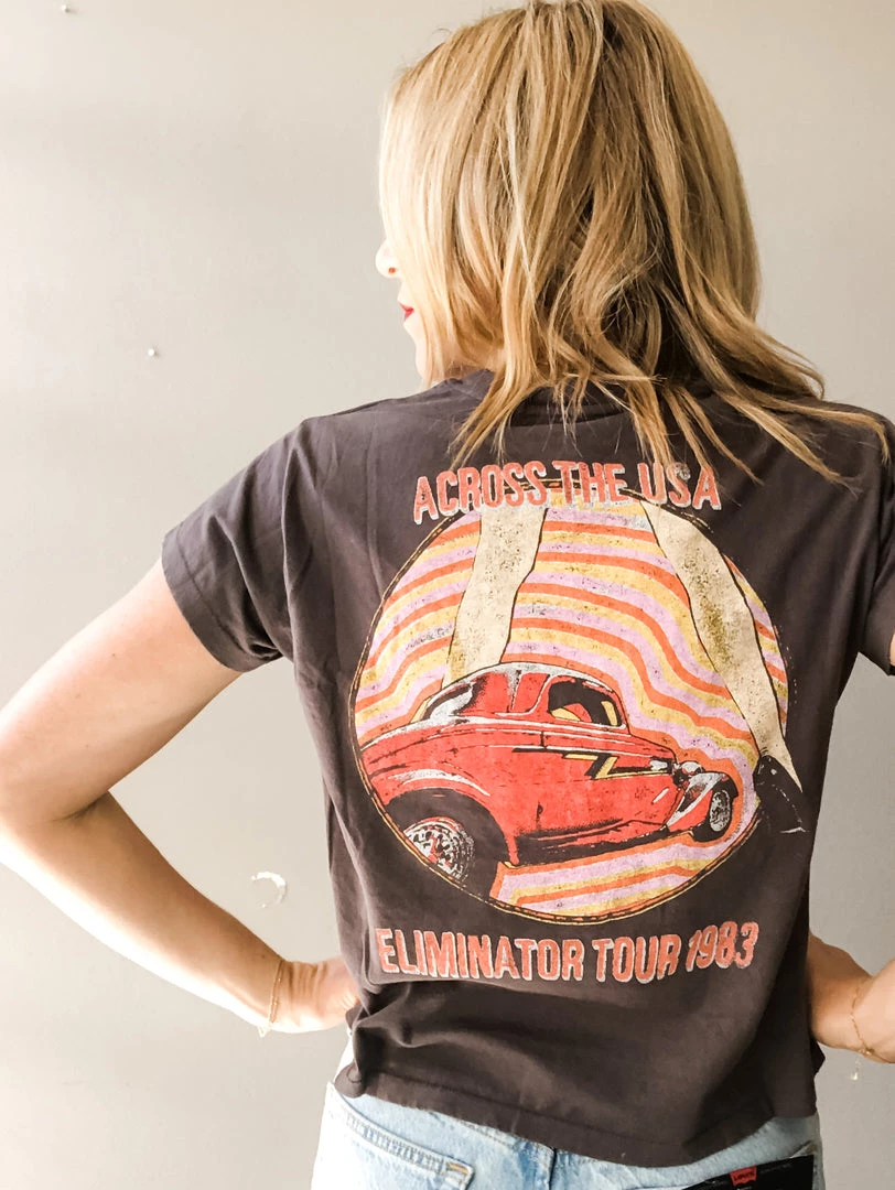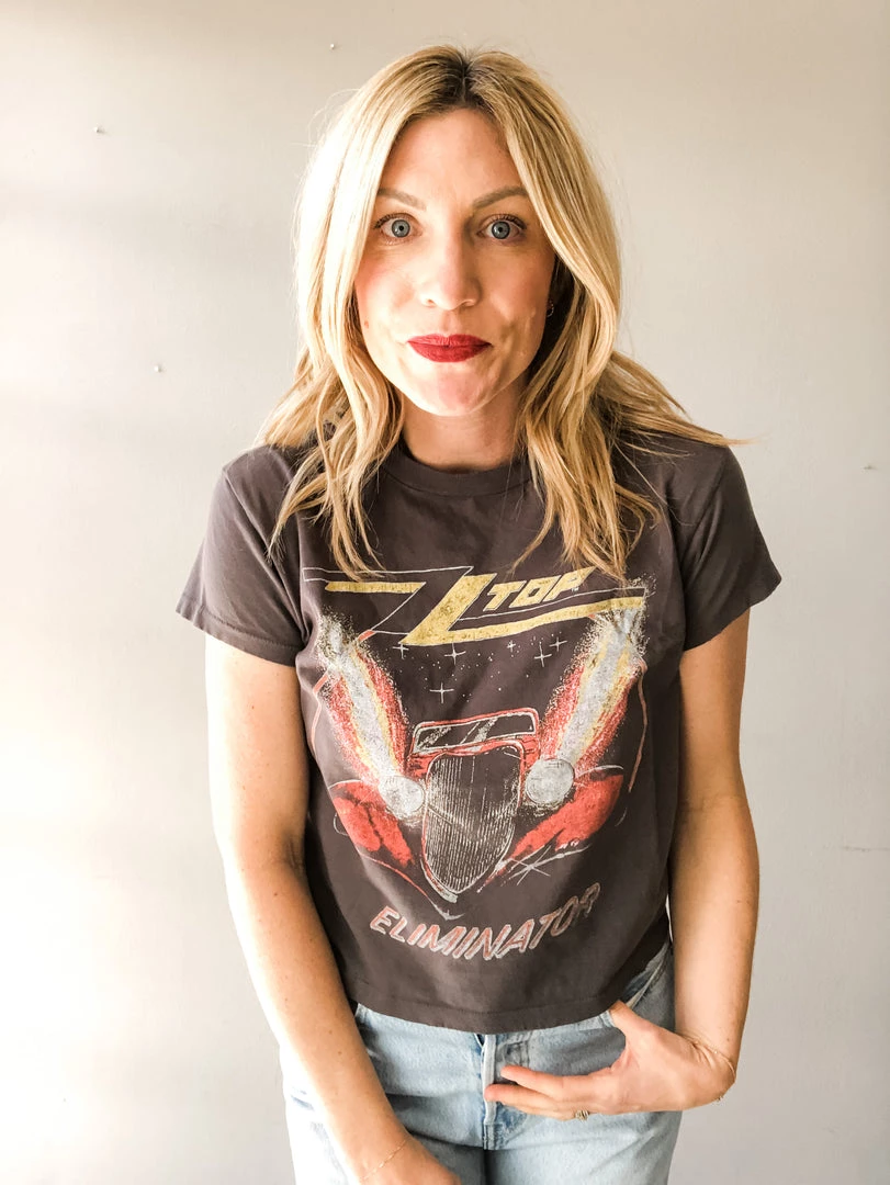 A classic. First ZZ Top graphic to hit the shop and we are head over heels! The album that launched their major commercial success, Eliminator. Available in the girlfriend tee with a double sided graphic, crew neck, reverse stitiching and the perfect almost cropped length. Paired with Levi’s and sneaks for our go to look.