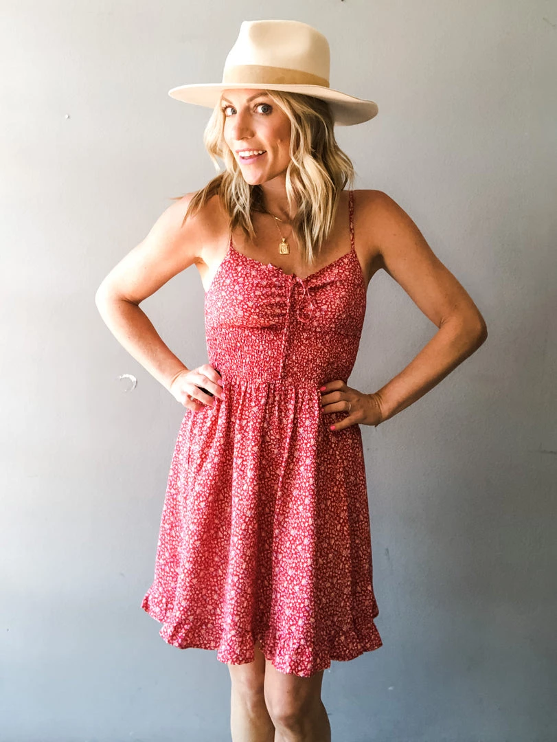 We live in and love flirty dresses like the ballet practice mini dress. A bustier style top that’s flattering on so many bust shapes with adjustable bust tie for your best fit. Smocked waist and flowy fit throughout with thigh skimming hem and easy adjustable shoulder straps.