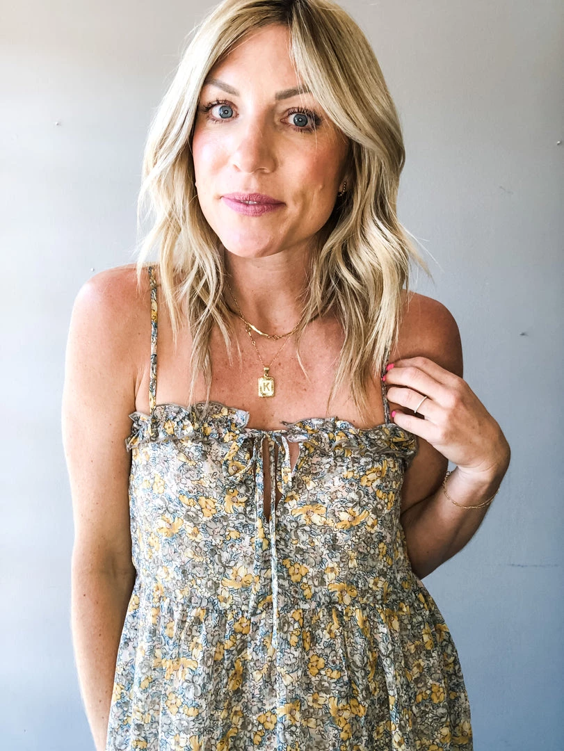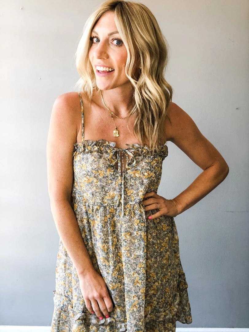 A fun and floral update on a classic babydoll style. This little number cuts a little higher in the waist and features ruffle trim details throughout. Such a flattering shape with easy fit and adjustable straps.