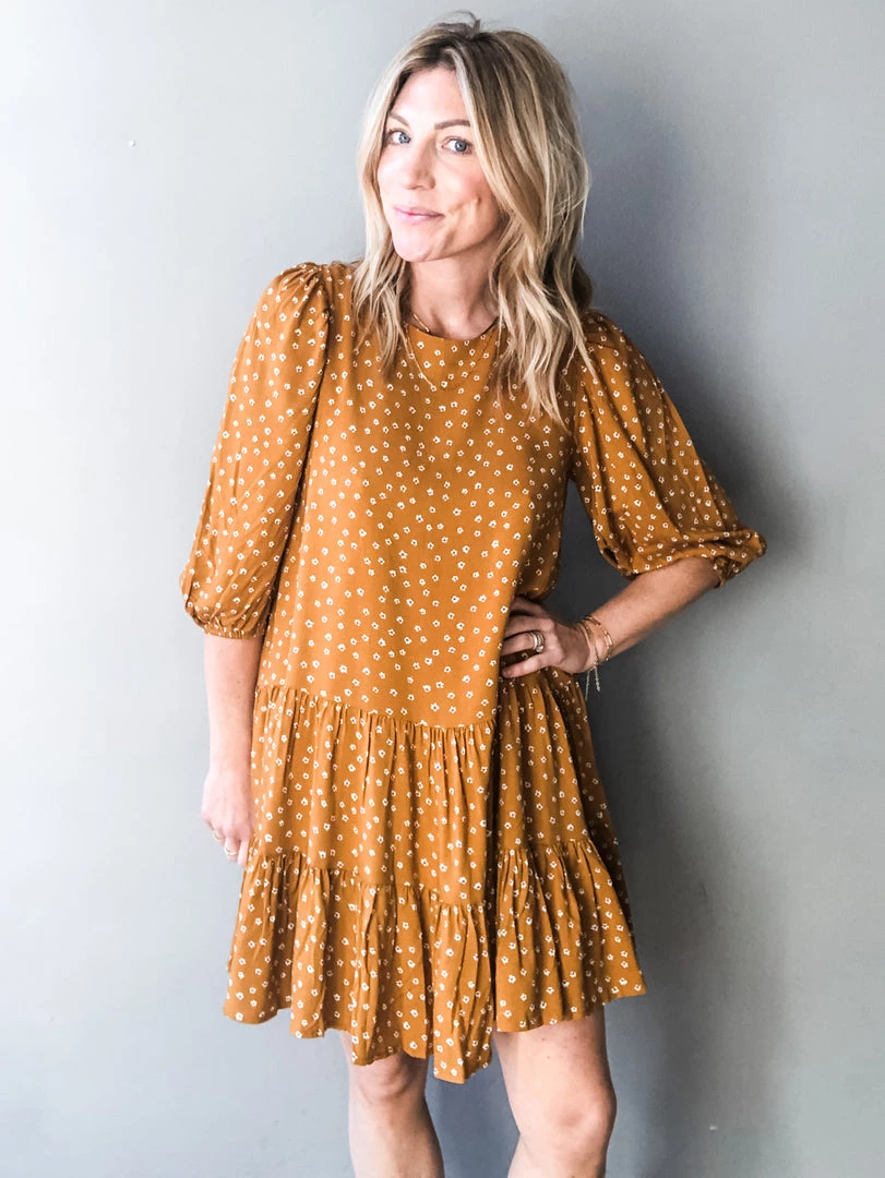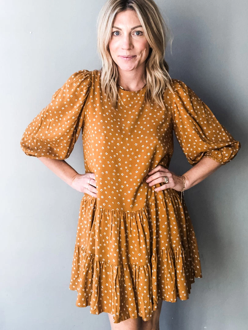 Feeling the boho vibes in the Francesca mini dress. A ditsy floral print swing dress with a bishop sleeve that is sweet and ultra feminine. We love this dress paired with sneakers or dressed up with a bootie. Great for day to night and work or play. Key hole with button closure at the neck and fully lined.
