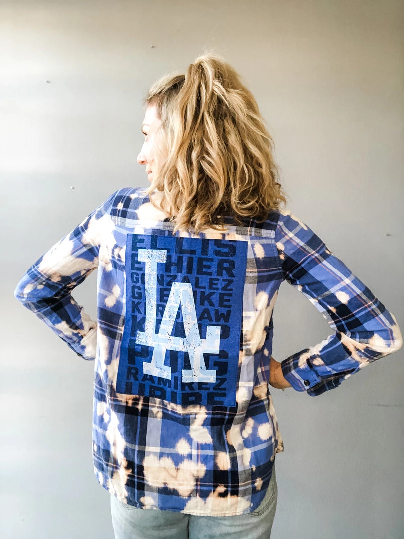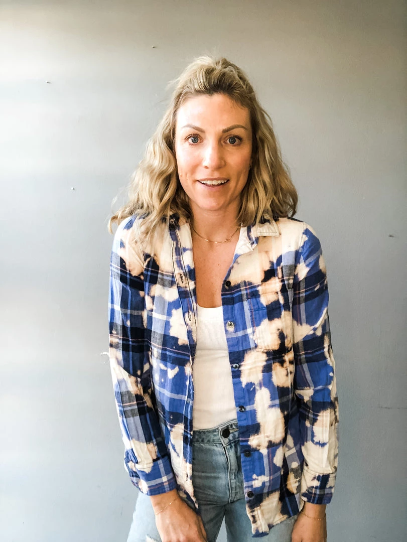 A one of a kindĀ vintageĀ flannel with hand bleaching, giving the shirt a tie dye/acid washed effect with a graphic teeĀ featuring great rock bands or icons stitchedĀ to the back. Can be worn as a shacket, buttoned up or tied around the waist. Fits like a S/M.