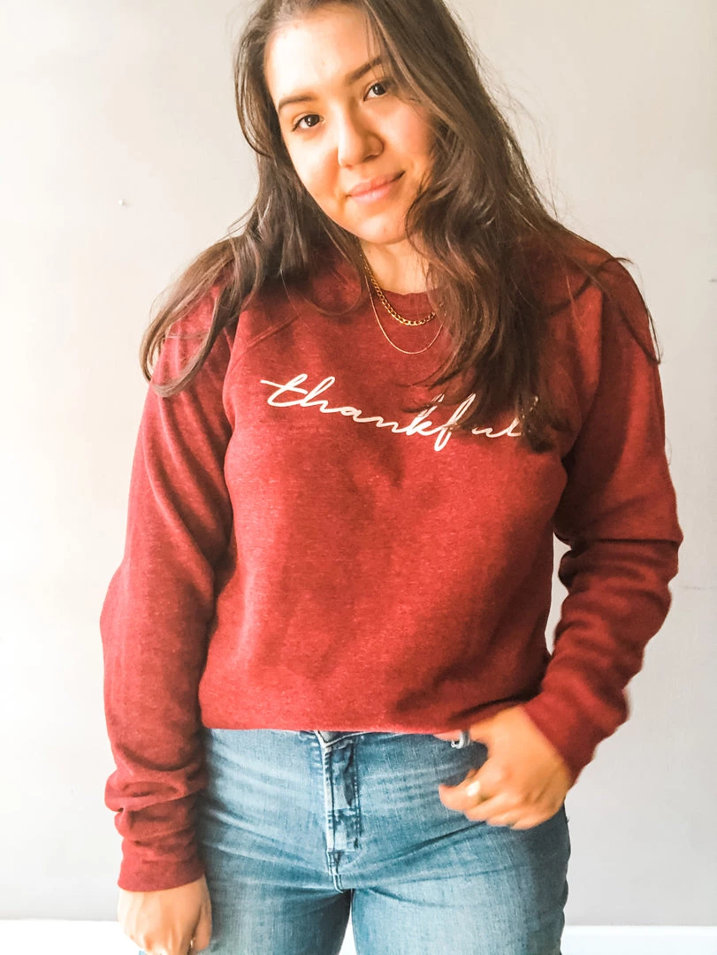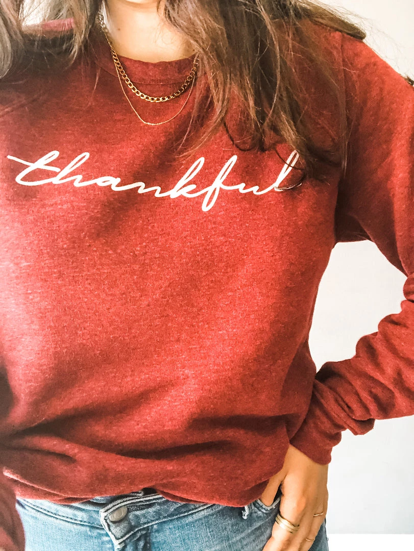 Let your graphic say it all. In a pretty-for-Fall wine colorway, this crew neck pullover is cozy enough to wear around the house. Or rock it with some denim and stacked necklaces. Runs slightly loose in the body with a longer torso. Perfect Thanksgiving Day look!