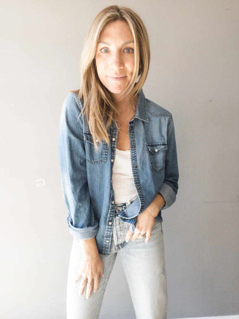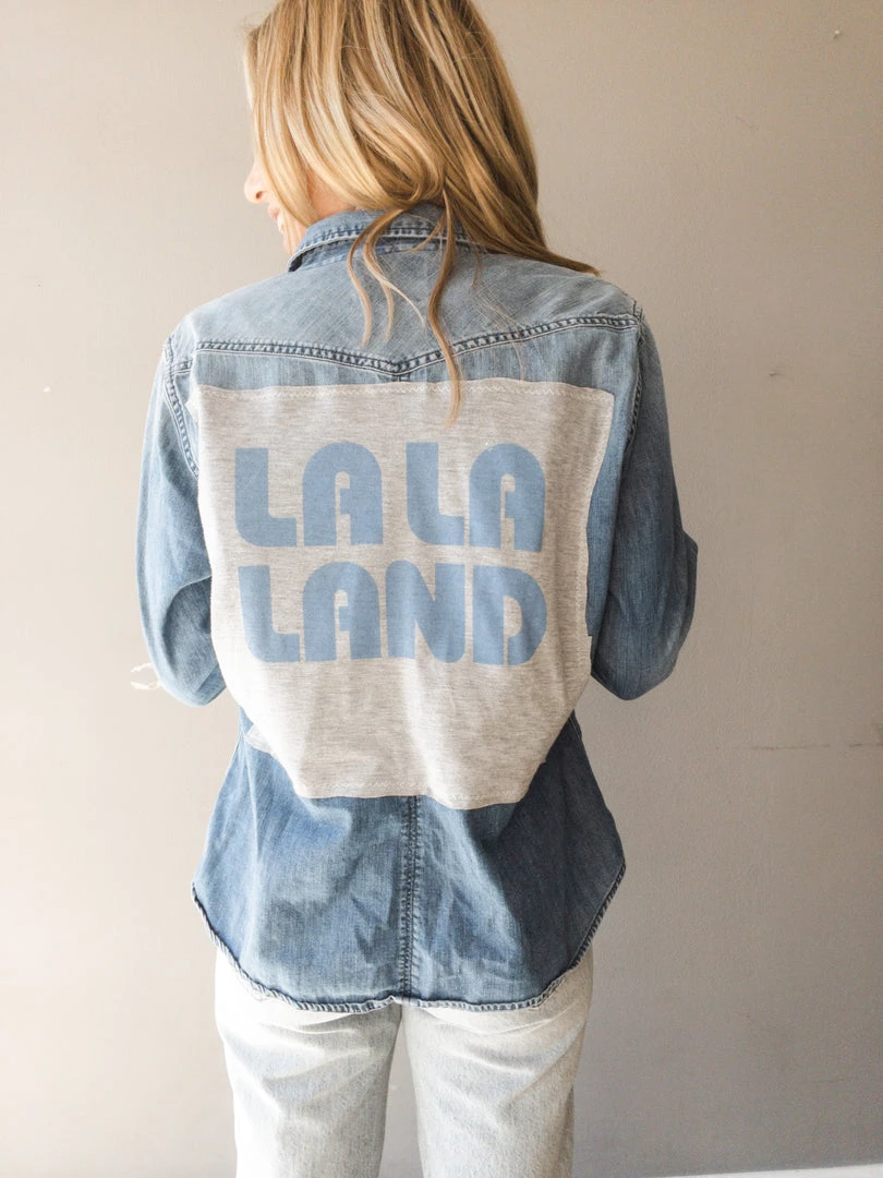 The perfect lightweight layer to throw over a tank & make a subtle statement with the graphic patch on the back. Represent the LA Dodgers or just good ol’ sunny Los Angeles with this one-of-a-kind piece. Features detailed snap buttons and a medium denim wash.