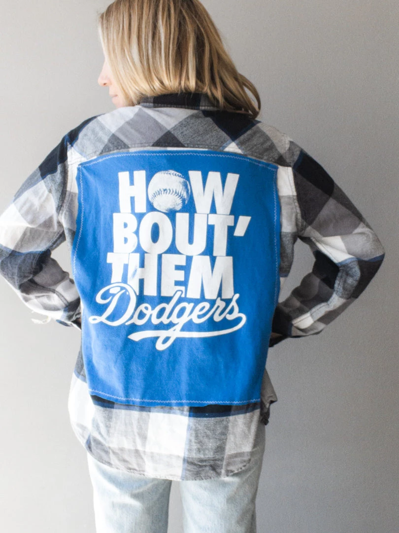 Perfect for a day at the ballpark, this super soft one-of-a-kindĀ vintageĀ flannelĀ features a Dodger graphicĀ patch on the back & is just what your spring wardrobe is looking for. Can be worn as a shacket, buttoned up or tied around the waist. Fits like a M/L.