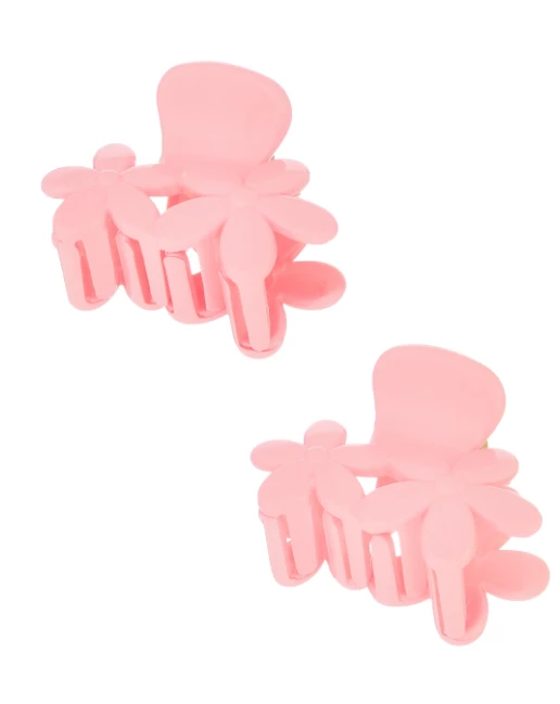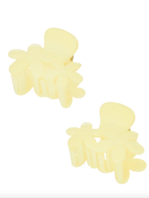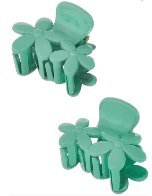 This floral clip set comes with two small matching clips in a variety of solid colors to choose from. The handle portion is big enough to easily open and close and the flowers sit next to each other and are slightly different sizes, giving it an asymmetrical appearance.