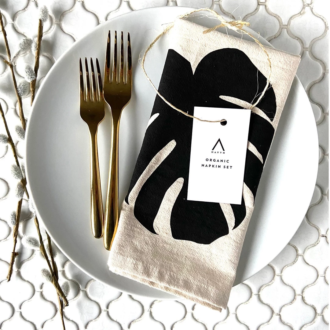 We love these earth-friendly alternative to paper napkins!! A set of 4 soft, absorbent, pre-washed 100% certified organic cotton napkins that are hand screen printed by using water based, eco friendly inks. Hem all around.