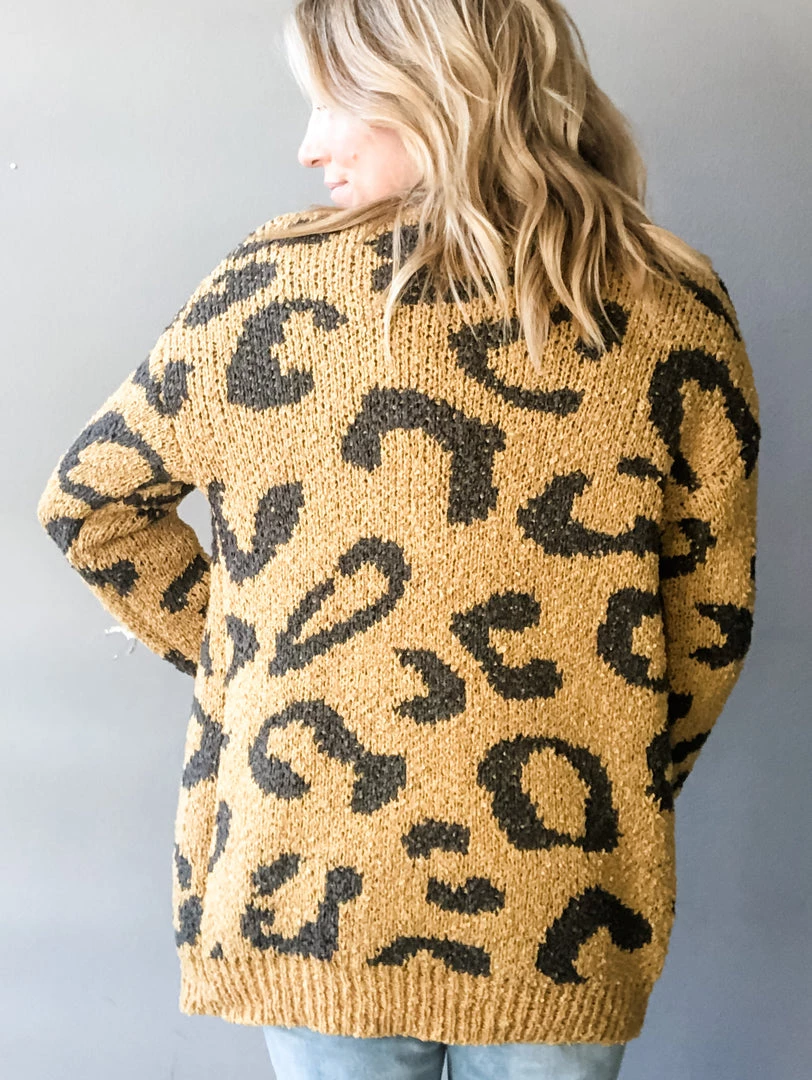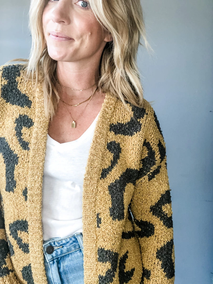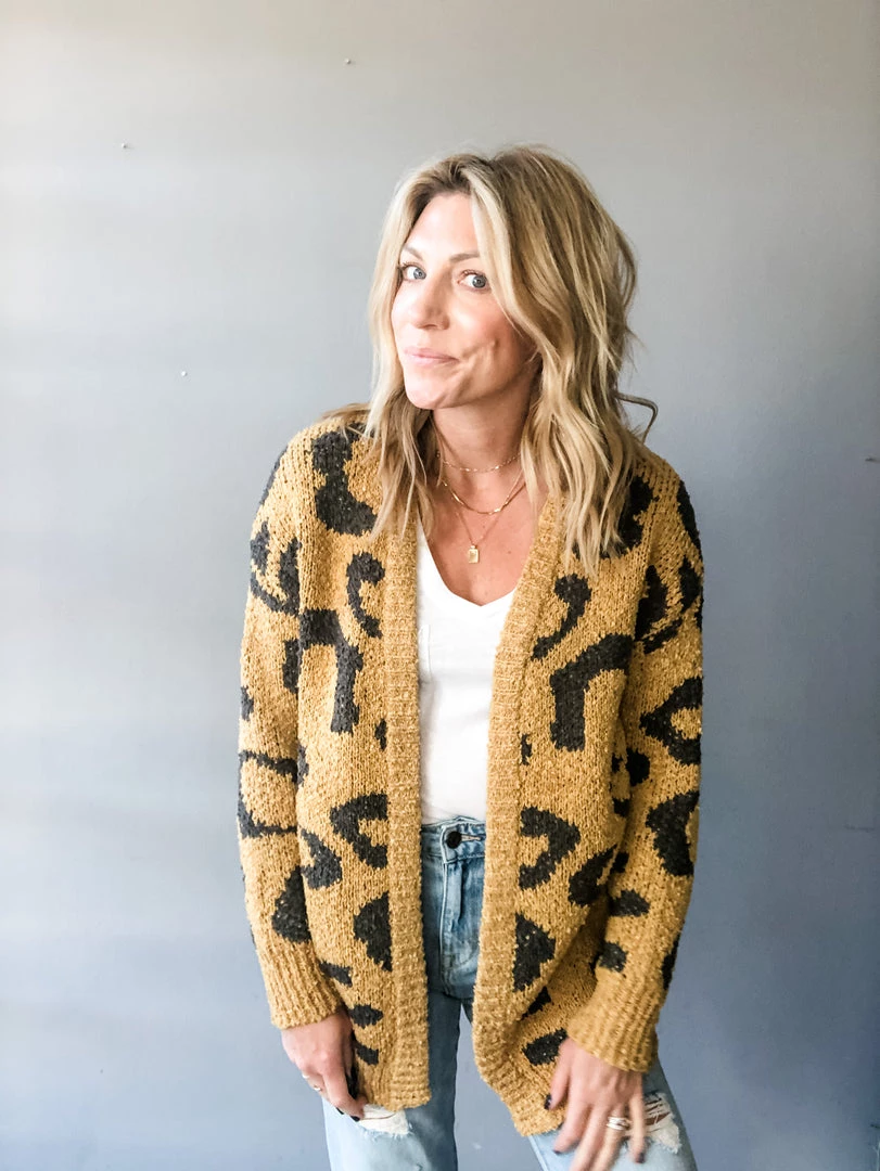 A leopard print knit open cardigan perfect for layering and adding a pop to any outfit. Love it casual with jeans and a tee or over a black dress for something a little more dressy. Easy to pair and wear all season long.