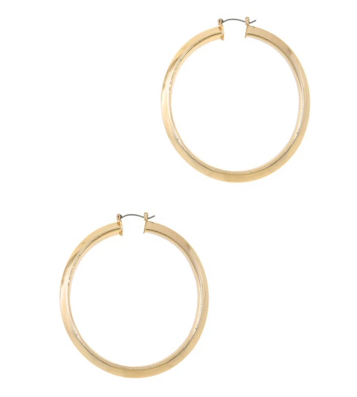 A 2.5” gold plated hoop earring. A simple add to any outfit.