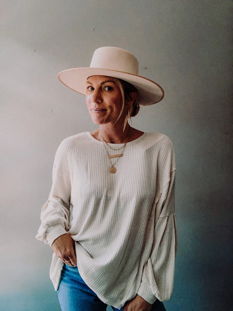 A loose fitting waffle knit with balloon sleeves, raw hem and open back. Can be worn for lounging or paired with jeans. Super soft and light weight. A perfect transition piece for cool summer nights to chilly fall days.