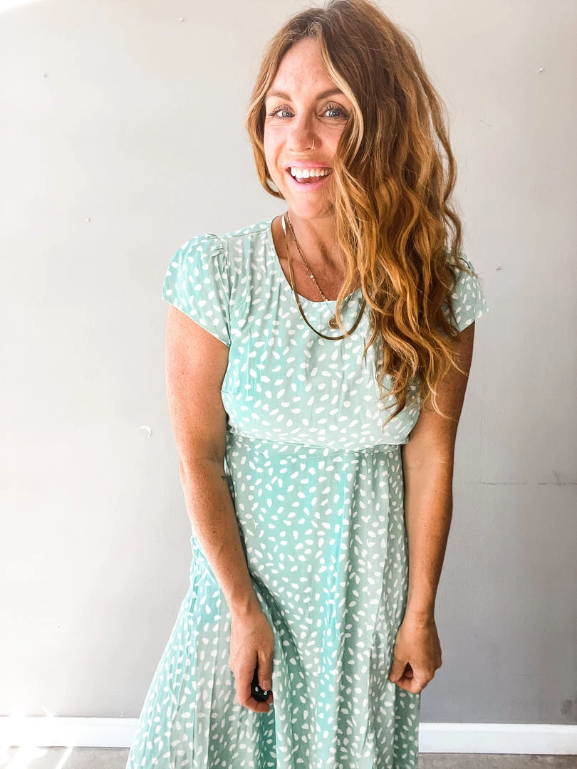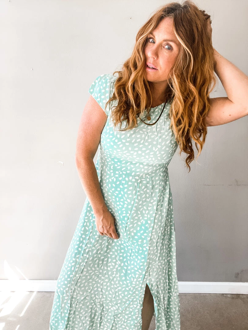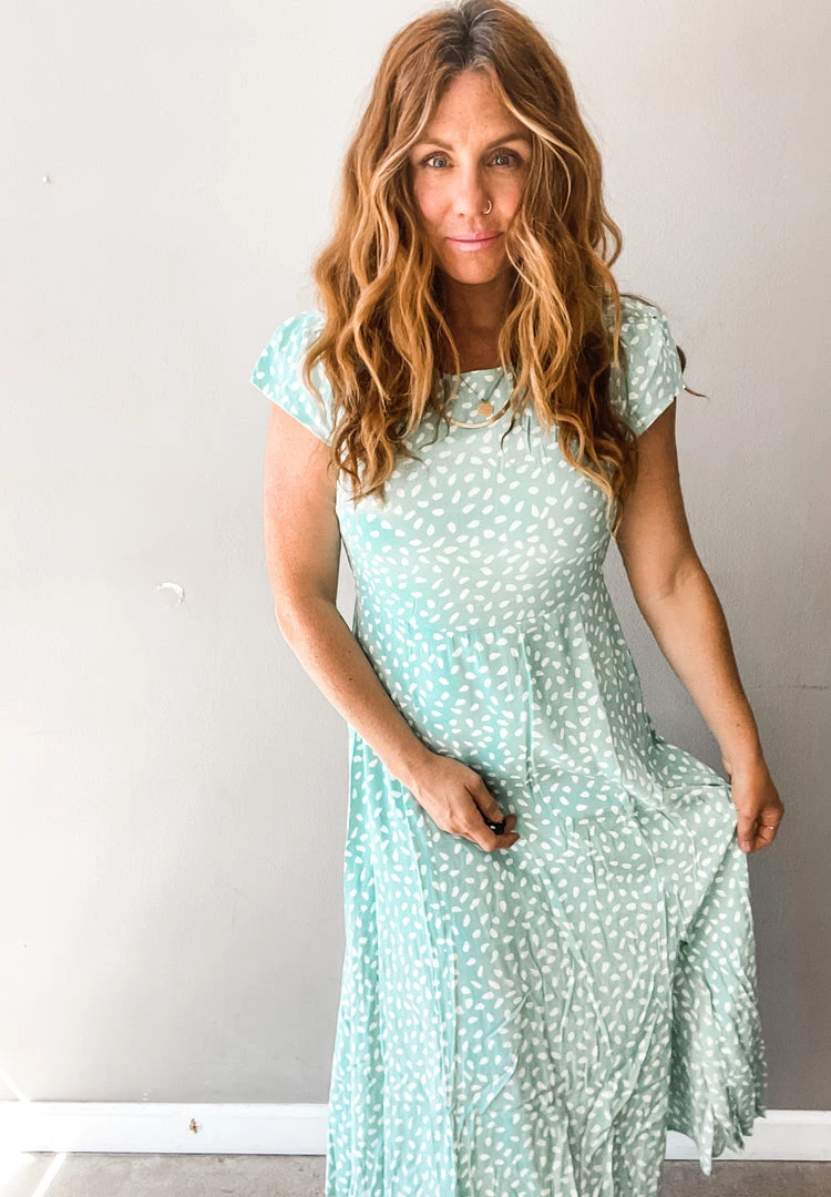 We love a great sweet little silhouette, and the Fields of Clover Maxi delivers!!!! This beautiful seafoam print is light and subtle, with a modest, timeless front, side slit and open back to kill for. Pair it with boots, fun heels for a fancy affair, or sneakers for a cool and casual vibe.