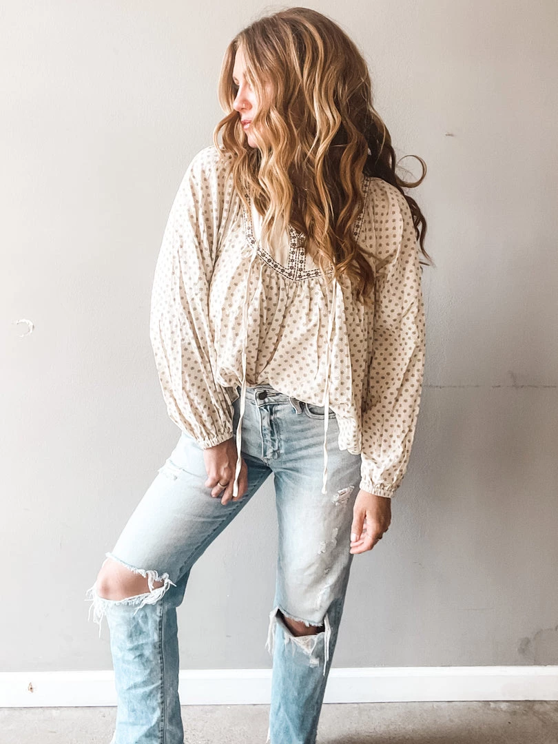 Our new In the Moment Floral Top is a sweet little boho inspired top that fits so well!!! A chic, oversized fit with loose sleeves that feature elastic at the hem, this simple and timeless top goes so well with deconstructed denim for an effotless, laid back vibe we can never get enough of.