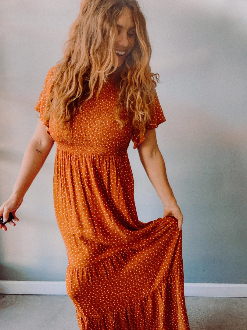 The Prairie Lane maxi dress is an amazing fit with loose sleeves, a smocked bust and a long, flowy skirt. This dress is an easy fit and makes for a showstopper at any occasion. Dressed up or down, you will take this girl with you everywhere.
