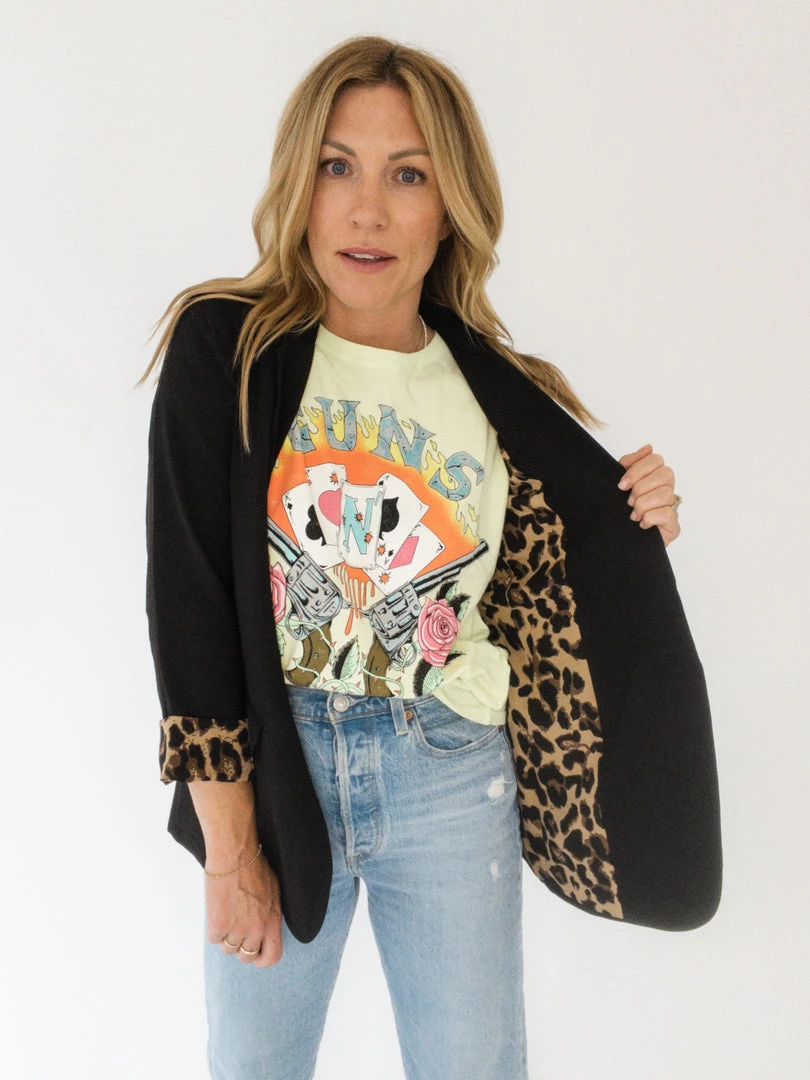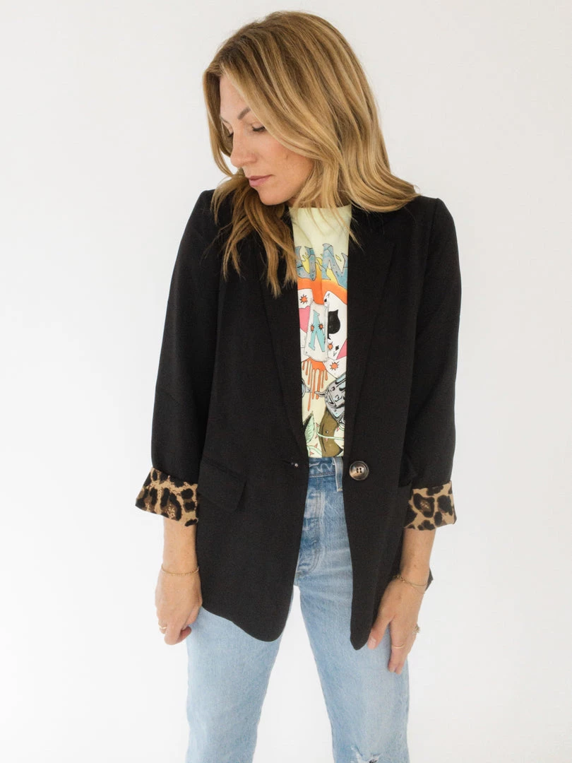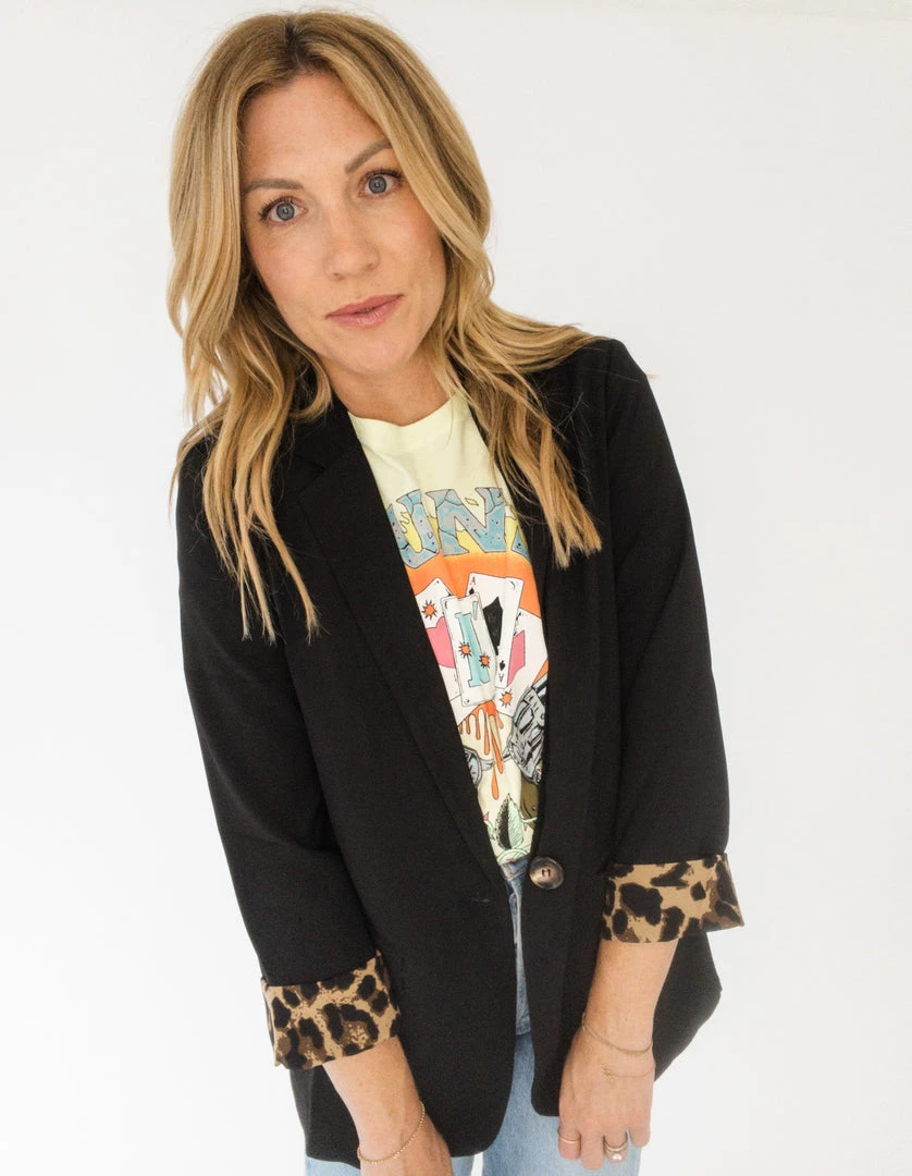 Make a statement without saying a word in this blazer. It has leopard print lined details inside the body, long sleeves, front pockets, a single button, and a split hem on the back. It’s lightweight, super soft, and has soft shoulder pads to help keep its structure. You can roll up the sleeve and reveal some leopard or keep it all one solid color. Available in two color ways!!