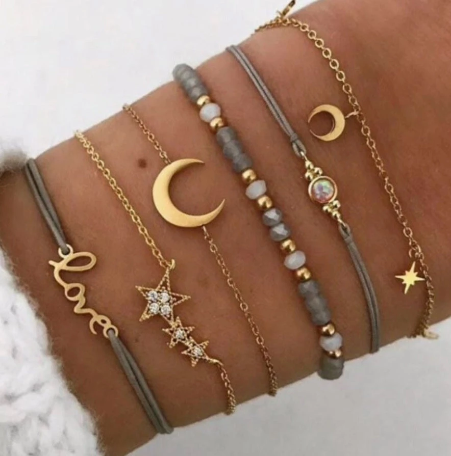 A 6 piece grey and gold plated bracelet set. Perfect to mix and match or wear solo.