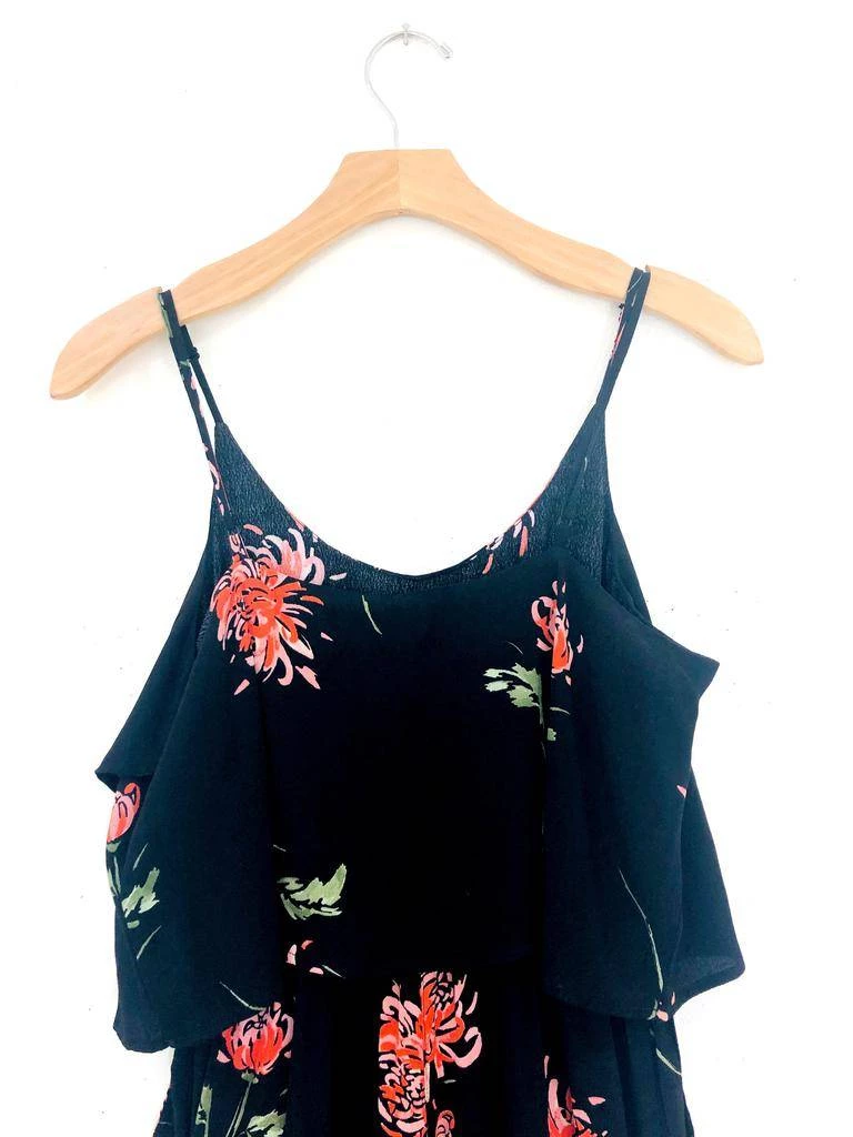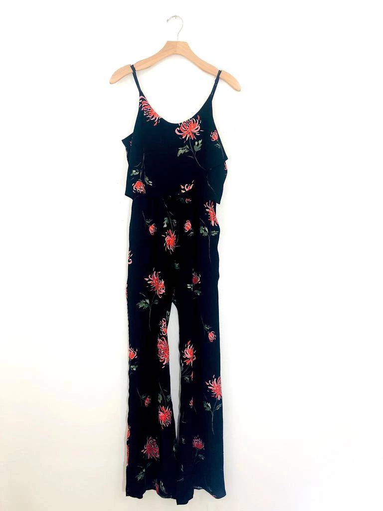 The Daisy Jumpsuit is a full length jumpsuit with a relaxed fit throughout. Adjustable shoulder straps, side pockets and elastic waist make this an easy wear for brunch or date night. The floral overlay top keeps it sweet and flirty.