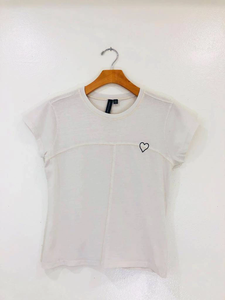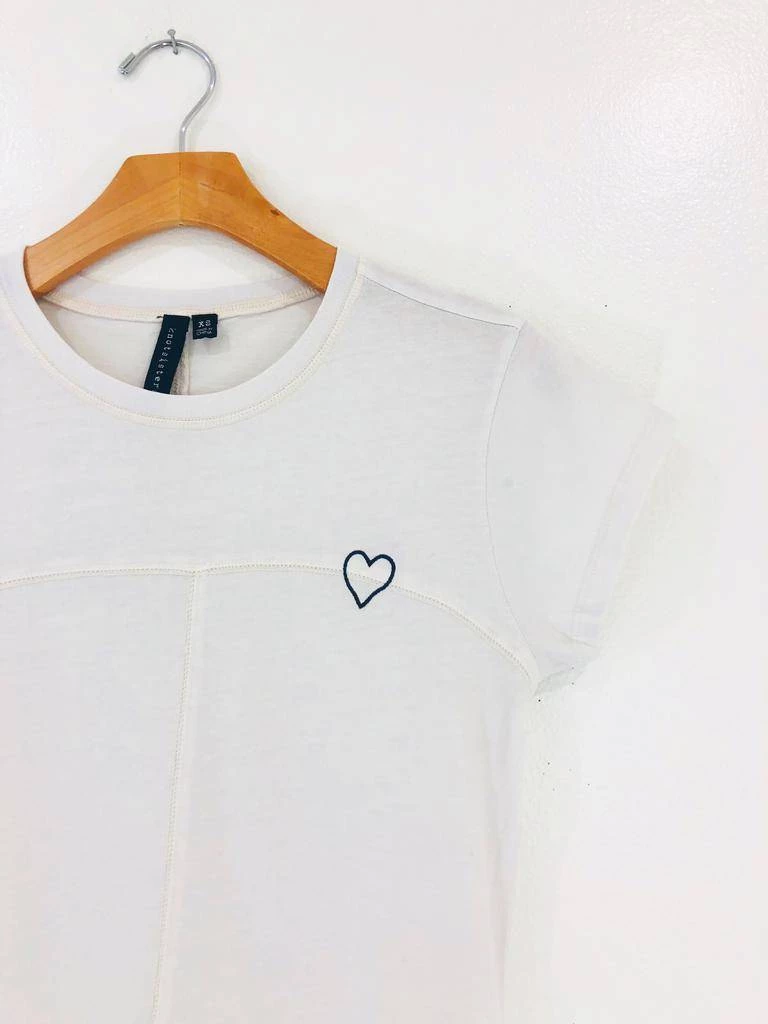 A relaxed fit with cuffed sleeves and line drawn heart graphic. This vintage white graphic is a slightly shorter fit and hits right at the top of hi-rise bottoms. Runs a little fitted thru the arms and bustline and is relaxed in the body.