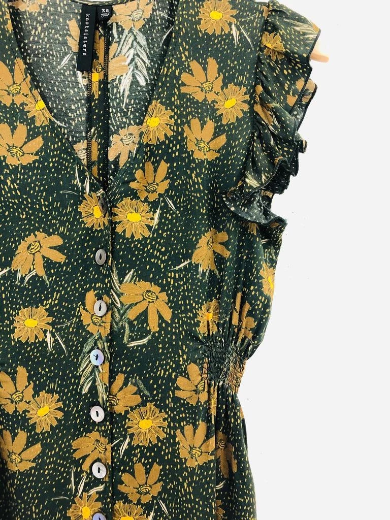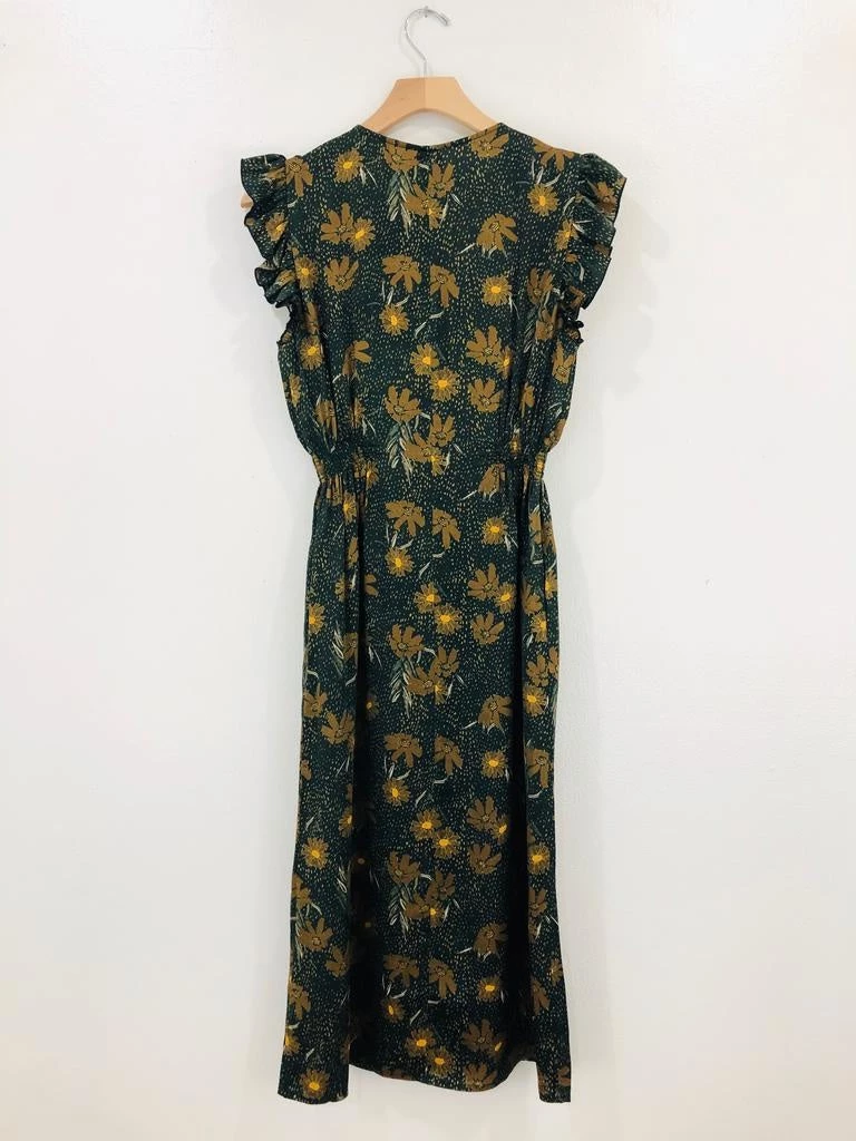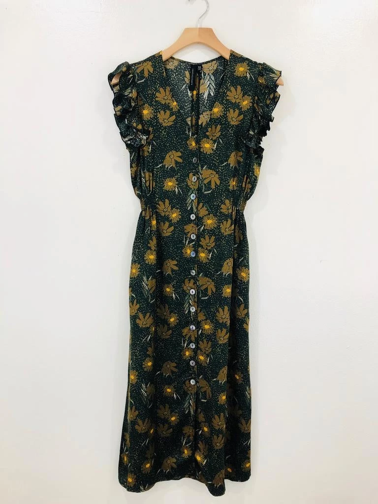 Hello, fall vibes! The Knot Sisters Maya Dress features a button front, ruffle sleeve, smocking at waist, and is midi length.