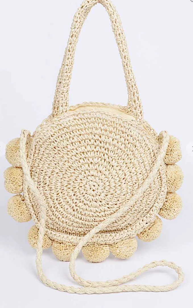 The Bora Bora Pom Bag is a showstopper! A fun straw style woven bag with palm details and a strap option! We love this easy summer bag for a vacation, beach day, or gals summer night out! Zipper closure.