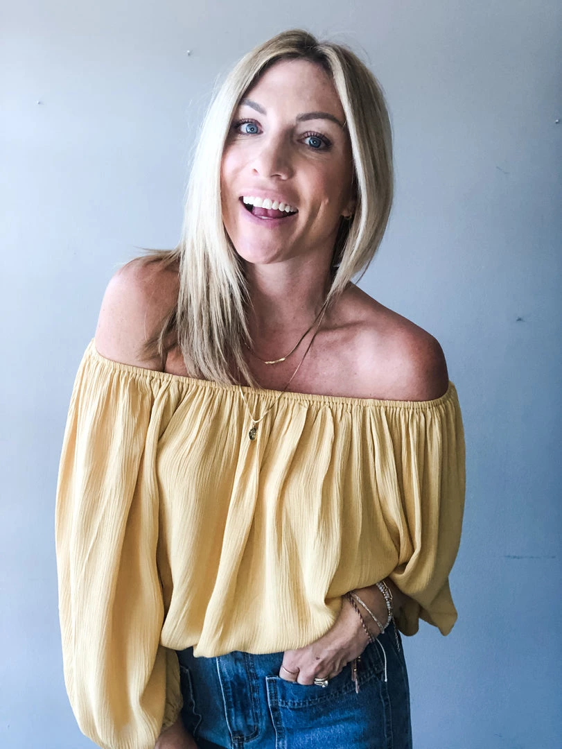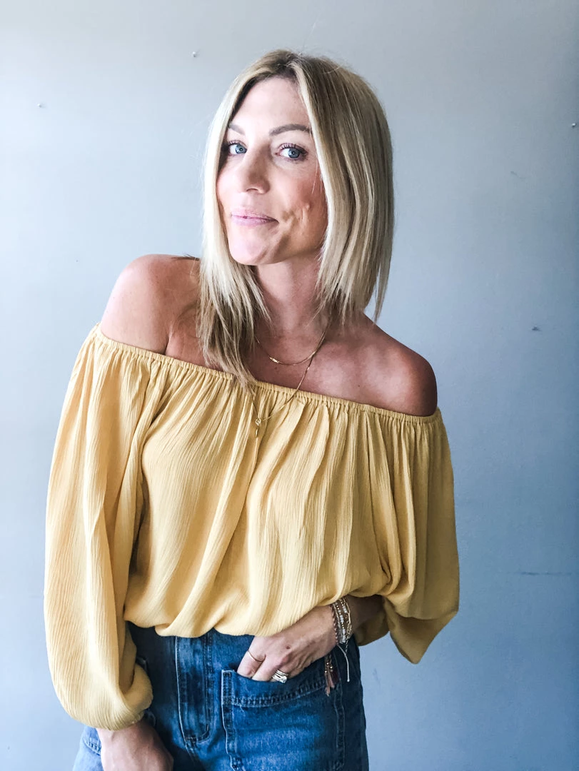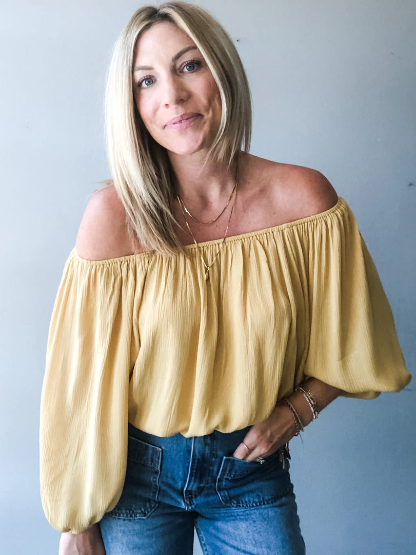 Stun all season long in this effortless top. The sun seeker top has a super versatile neckline that can be worn off the shoulder or as a classic sqaure neck silhouette. Elastic sleeves and hemline keep s the fit flexible but secure.