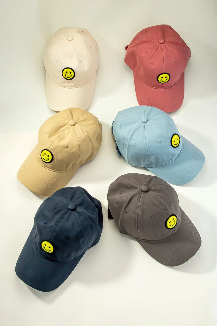 Our new All Smiles Baseball Hat is a sun summertime accessory to throw on and go! We love this simple style hat in easy neutrals and fun smiley face detail. Perfect accessory to add stylet to every look.
