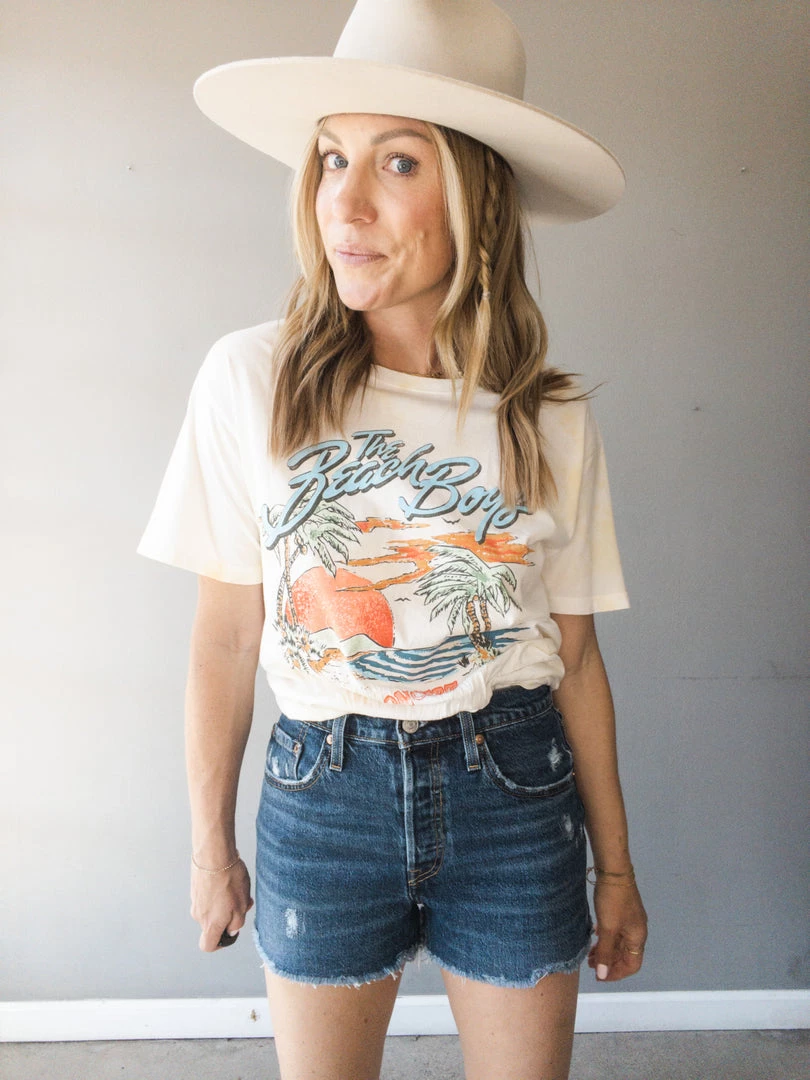 Summer is calling and these shorts are a must have! Fitted through the hips and thighs with a high rise that hits right at the waist and button fly closure. The vintage inspired fit with raw hem makes these shorts perfect for any summer outing. Throw over a bathing suit or easily pair with a tee.