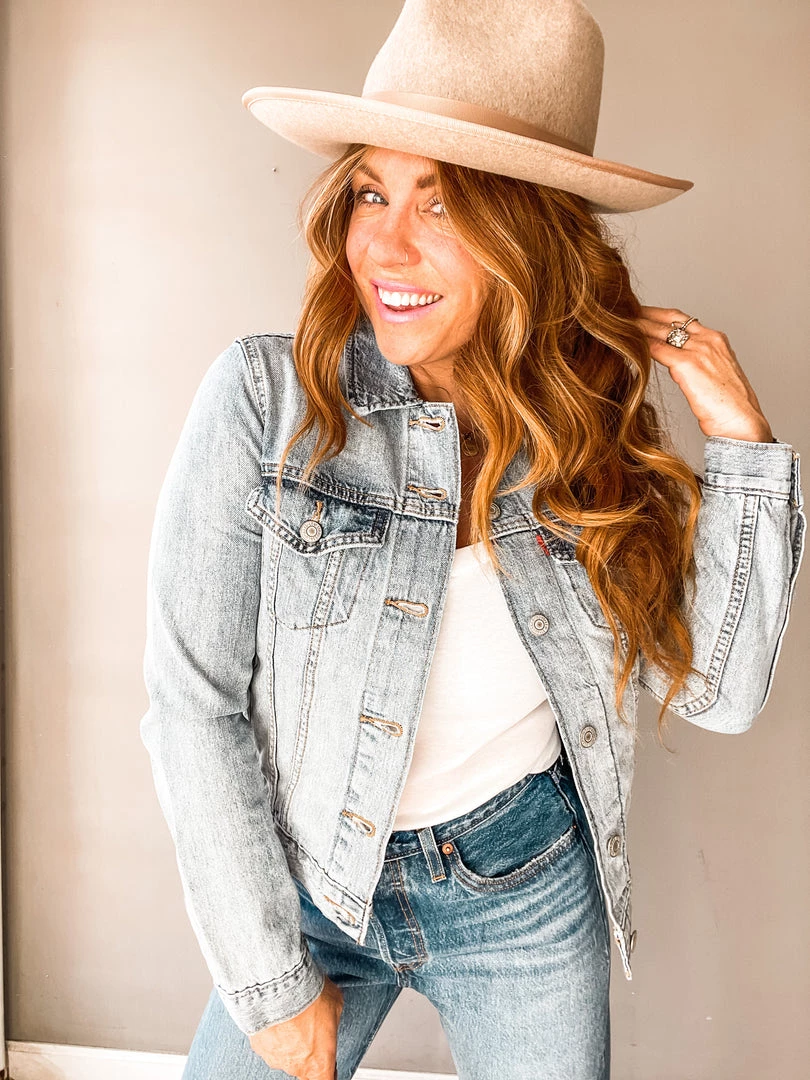 The Levi’s Original Trucker Jacket is a classic that every jean jacket lovin gal NEEDS. A perfect fit. This jacket is lightweight, easy to wear over anything, and a tried and true staple you will never regret! We love the slightly structured fit of this easy basic. Great to wear open or buttoned up, she’s the kind of girl you need with you on every road trip.
