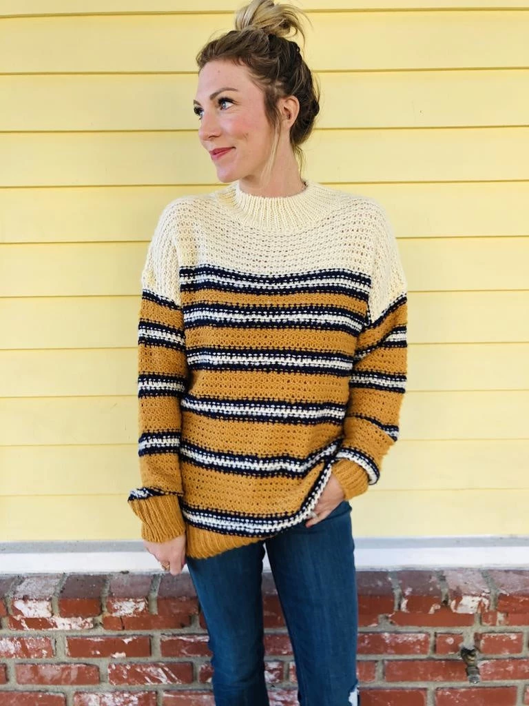 The Charlie Sweater is a loose knit pullover that runs long in the torso and features a throwback colorway we can’t get enough of. This crew neck sweater is an open-knit fabirc that feels so soft on. Features banded waist and sleeves.