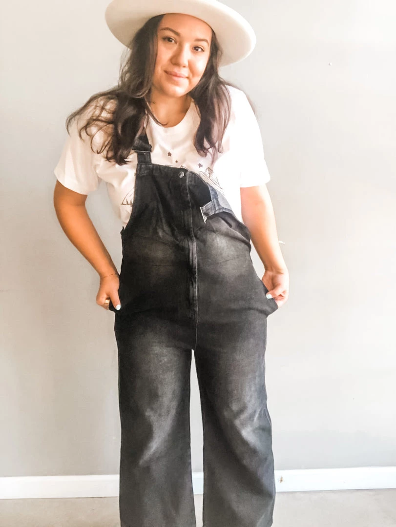 One of our summer go-to styles are overalls!! We love how easy they are to wear around town, chasing after the kiddos or traipsing barefoot through the backyard. These charcoal washed ovies feature adjustable buckle straps and a flirty zip up front. Four pocket details and slightly wider fit in the leg.