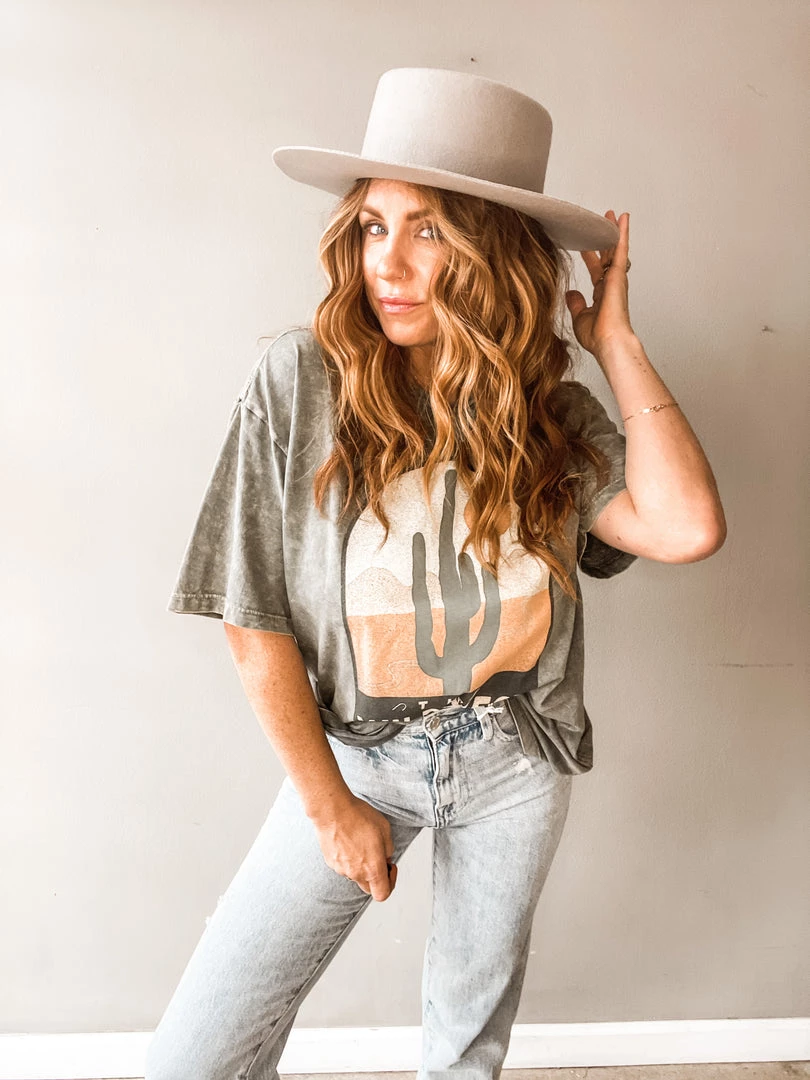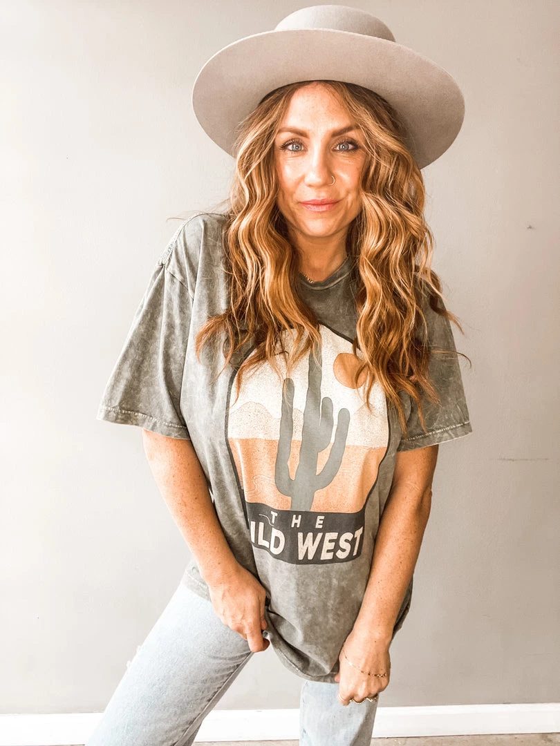 The Wild West Graphic Tee is a great go-to graphic with awesome desert tones that are perfect for pairing with denim, floral midi skirts, or layered over your favorite midi dresses!