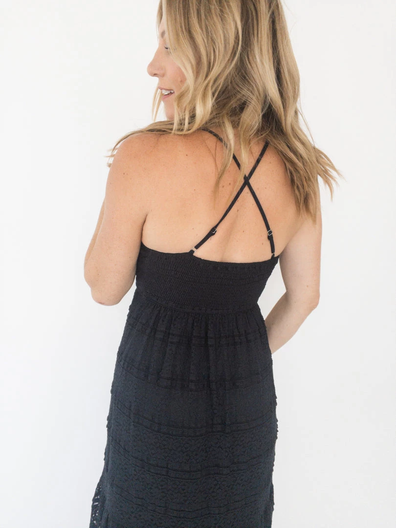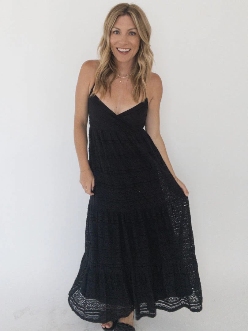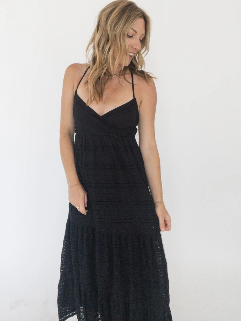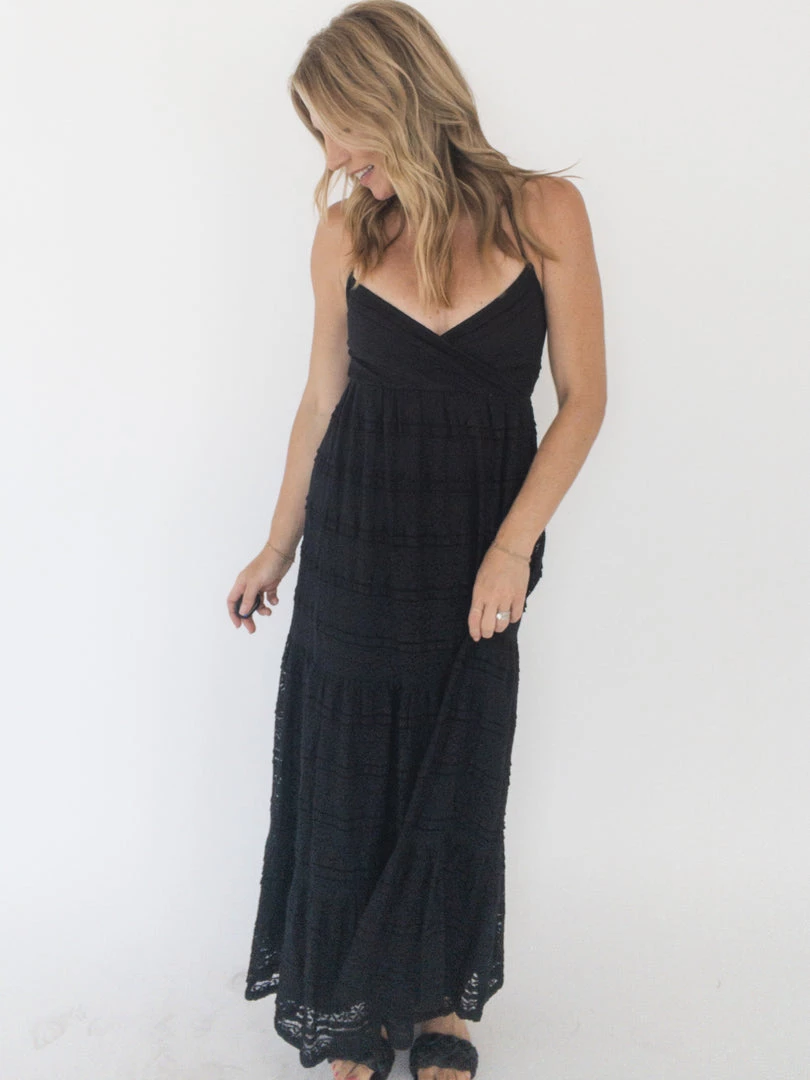 The Barcelona Nights dress is a pretty lace maxi that we love dressed down with a hat and slides for a weekend away or dressed up with a heel for wedding season.