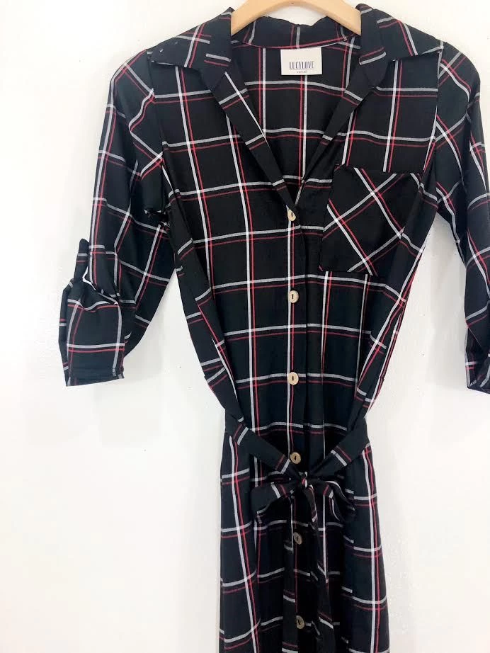 Our NEW Lucy Love Monmartre Dress is a rad plaid button up dress with roll up sleeves that is perfect for Fall!! Love it with booties or tall boots and a leather jacket.