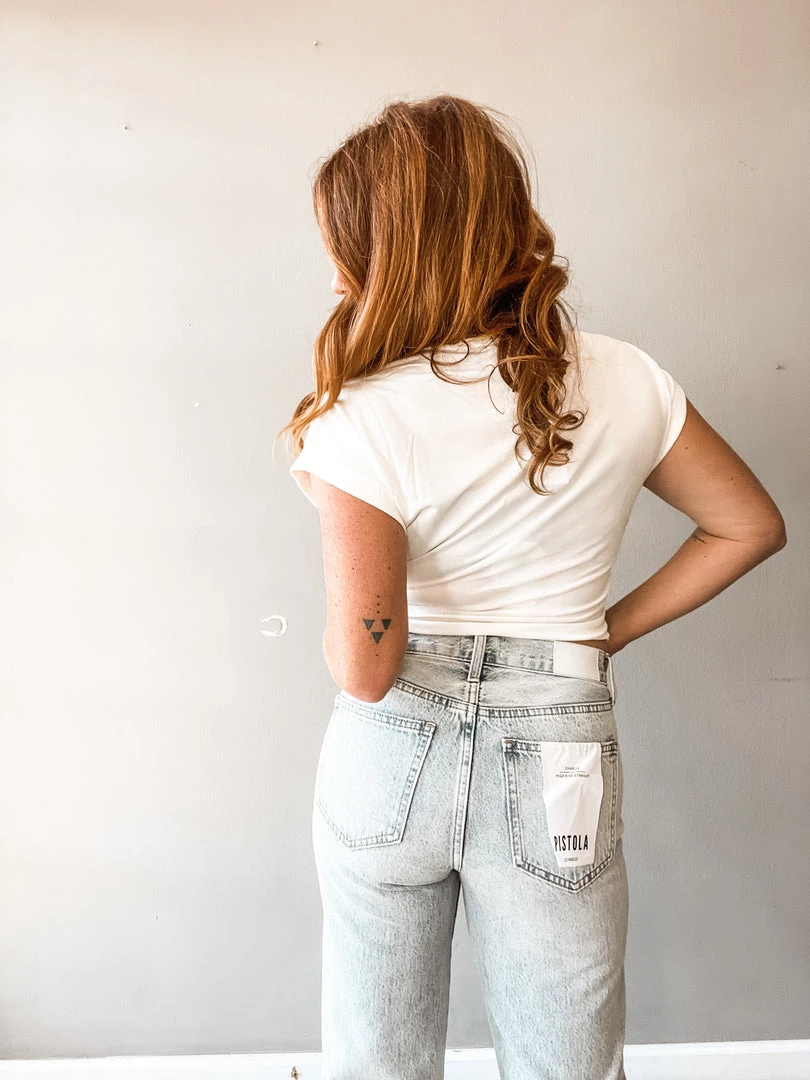 A cropped muscle tee, but make it feminine! This buttery-soft tee has cuffed sleeves, a round-neck, and a fun front hemline detail that makes it look tied up. Throw it on with a good pair of denim and call it good.