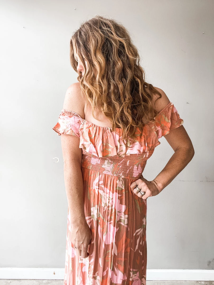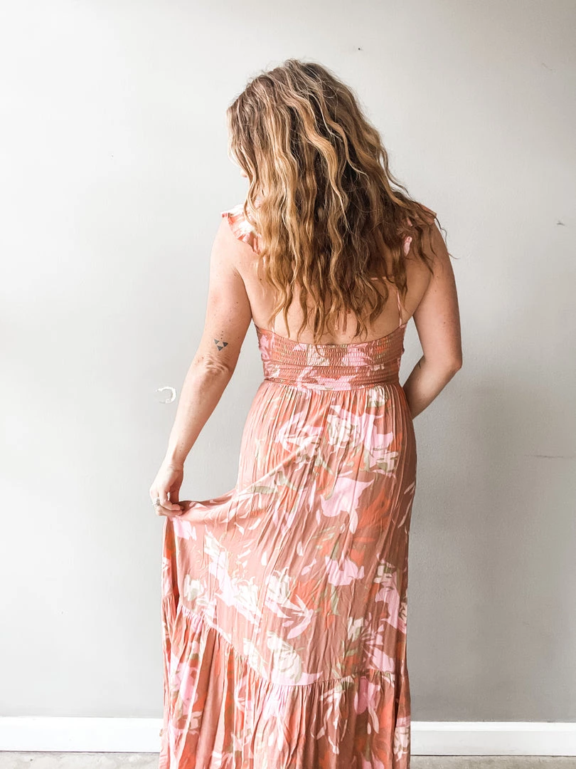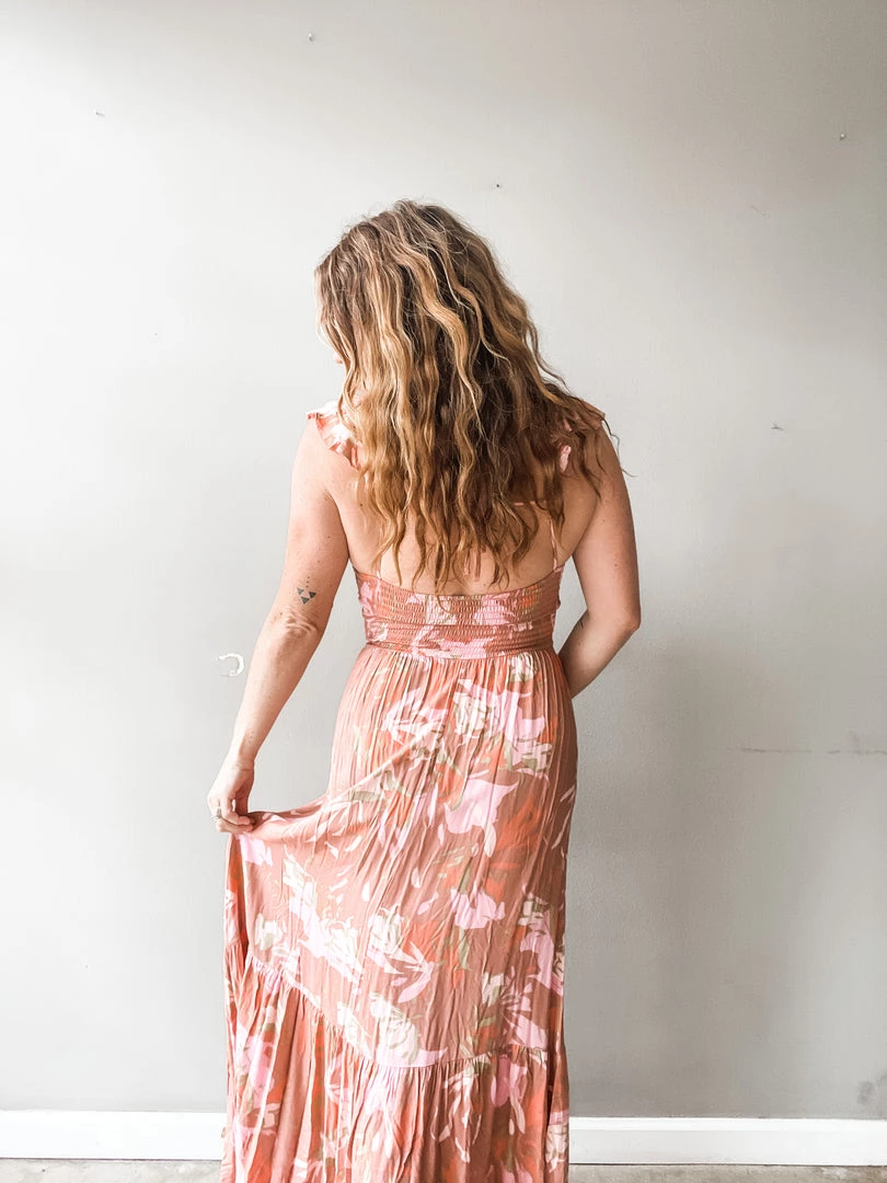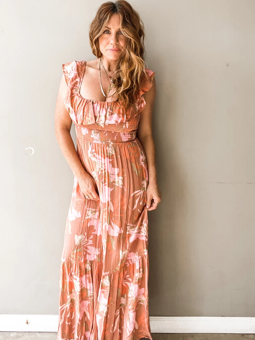 The California Blooming Maxi Dress is a silhouette we just can’t get enough of!!! This flattering maxi dress has a smocked top (great for all bust sizes), ruffle sleeve, and open tie back details. An easy, comfortable fit and perfect for all your spring and summer events and vacations!