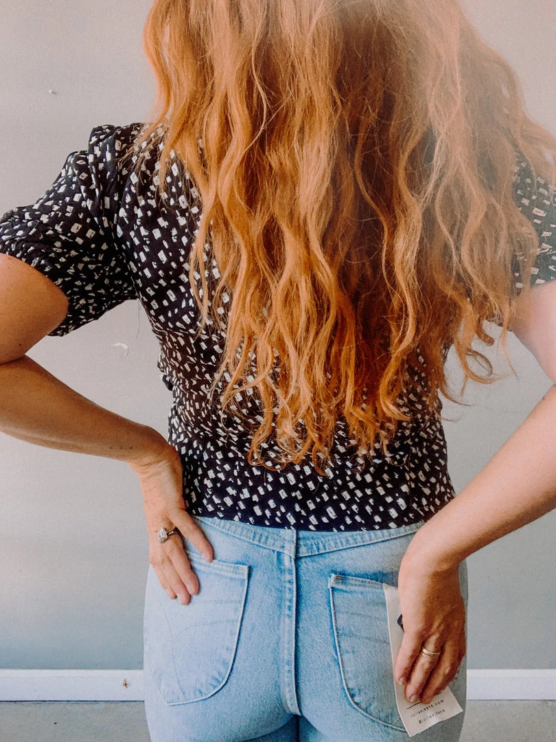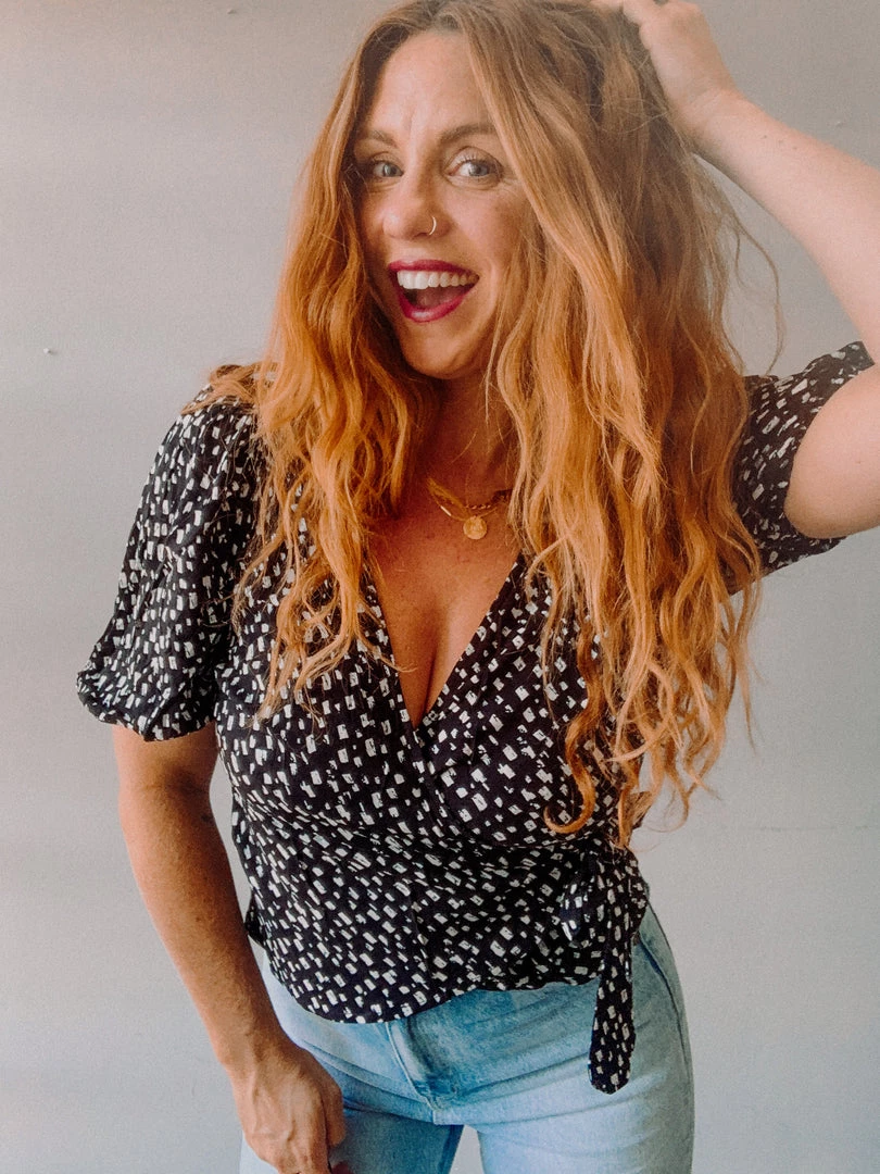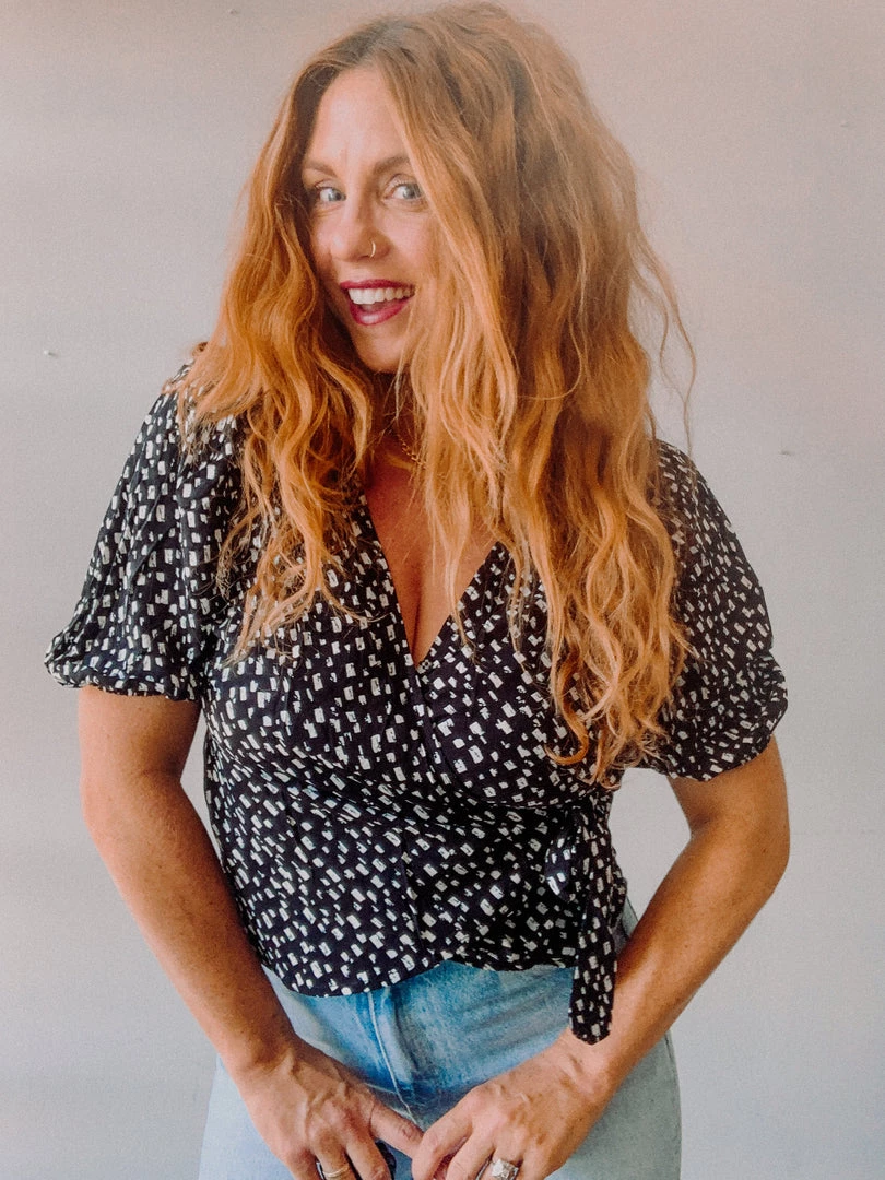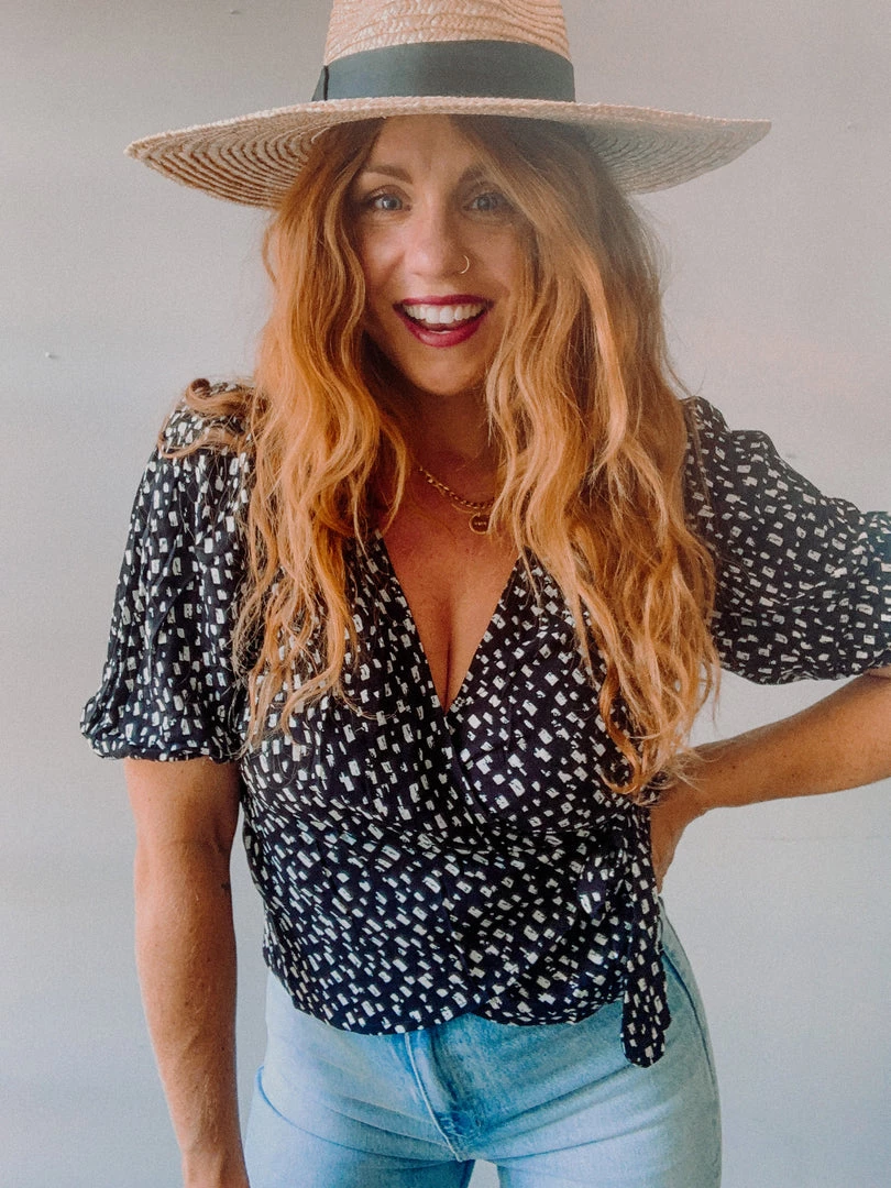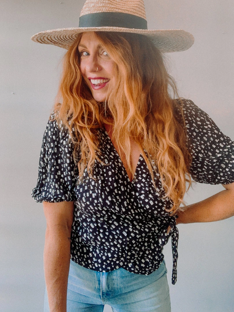 The Charlotte Blouse is a feminine wrap-style v neck top with fun puffy sleeves. If you love a great wrap dress, this takes that amazing and super flattering silhouette, and gives it to ya in a top. We love the effortless chic look this blouse gives to any bottom.