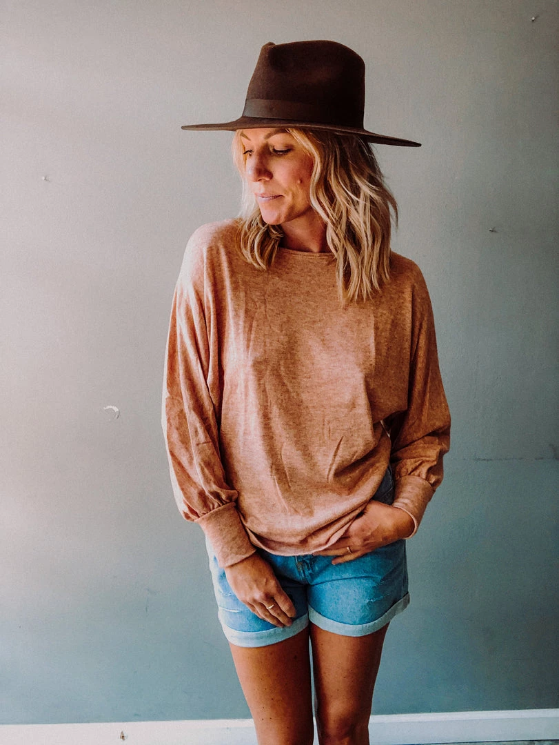 A wide neck pullover sweater with balloon sleeves and wide hem at the wrist. Super soft and ultra chic can be dressed up with jeans and booties or worn for work. A fall favorite!
