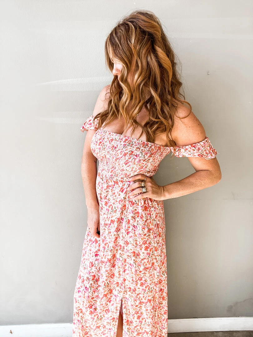 The La Jolla dress has us all excited for the warmer weather and makes us want to book a vacay ASAP. Cabo anyone?? This bright floral number has flattering off the shoulder ruffle sleeve details with a smocked bust for an easy fit. We love the flirty cut out details at the side with elasticated trim for a comfy all-day fit. Peep that little leg slit too – so good!!