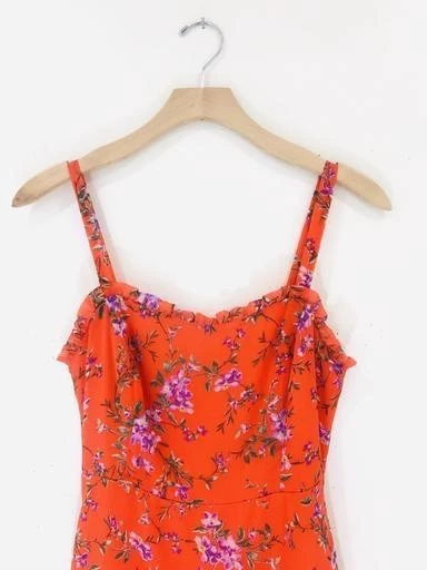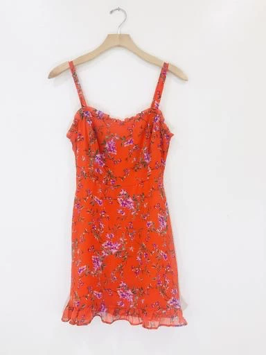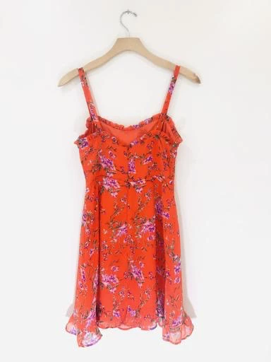 This is the dress you’ve been looking for! An orange lilac number that’ll turn heads. The ruffle hem and neckline keep things flirty. This mini features fixed straps and hidden back zipper with hook closure.