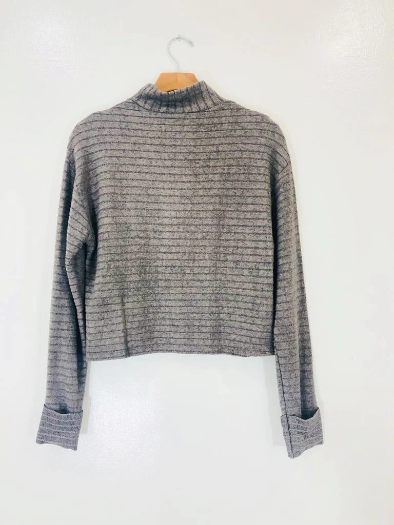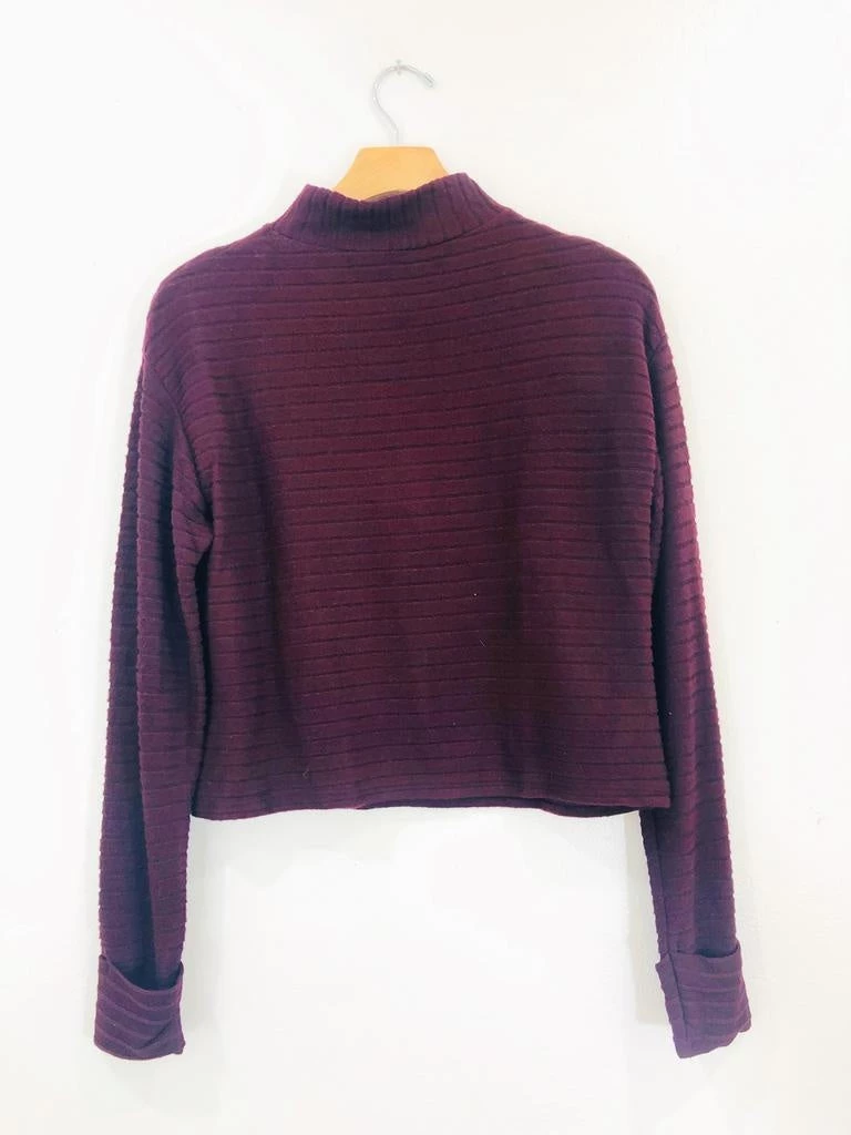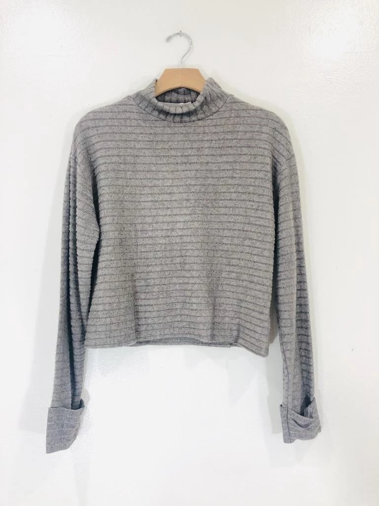 An easy basic that you’ll reach for all the time. This mock neck long sleeve is a cozy waffle knit with cuffed sleeves and a slightly cropped fit.